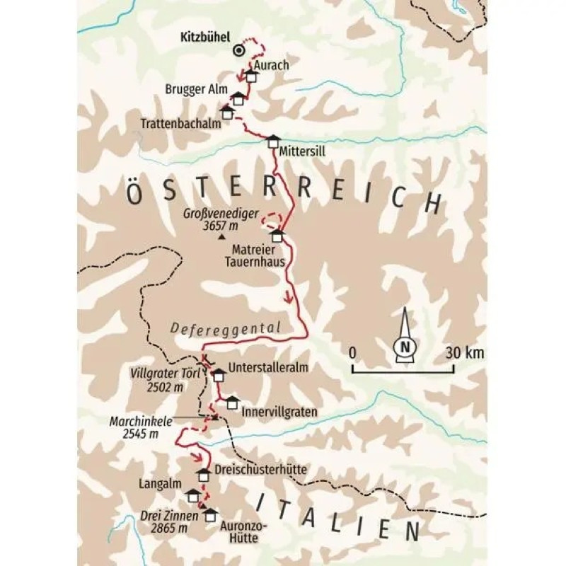 Weiter geht es in den Nationalpark Hohe Tauern, der uns völlig neue Ausblicke bietet. Hier dominieren felsige Gipfel und Bergriesen, die über 3000 Meter hoch in den Himmel ragen. Der Großvenediger mit seinen weitläufigen Gletscherflächen wird uns bei unserer Wanderung durch die Hohen Tauern faszinieren. Die ruhigen und ursprünglichen Osttiroler Täler üben einen ganz besonderen Reiz aus. Beim Aufstieg aus den Tälern geht es durch alte Fichten-, Lärchen- und Zirbenwälder. Plätschernde Bäche schlängeln sich durch die saftig grünen Wiesen in den höheren Lagen, während idyllisch gelegene Almdörfer in den Hochtälern zu einer gemütlichen Einkehr einladen.