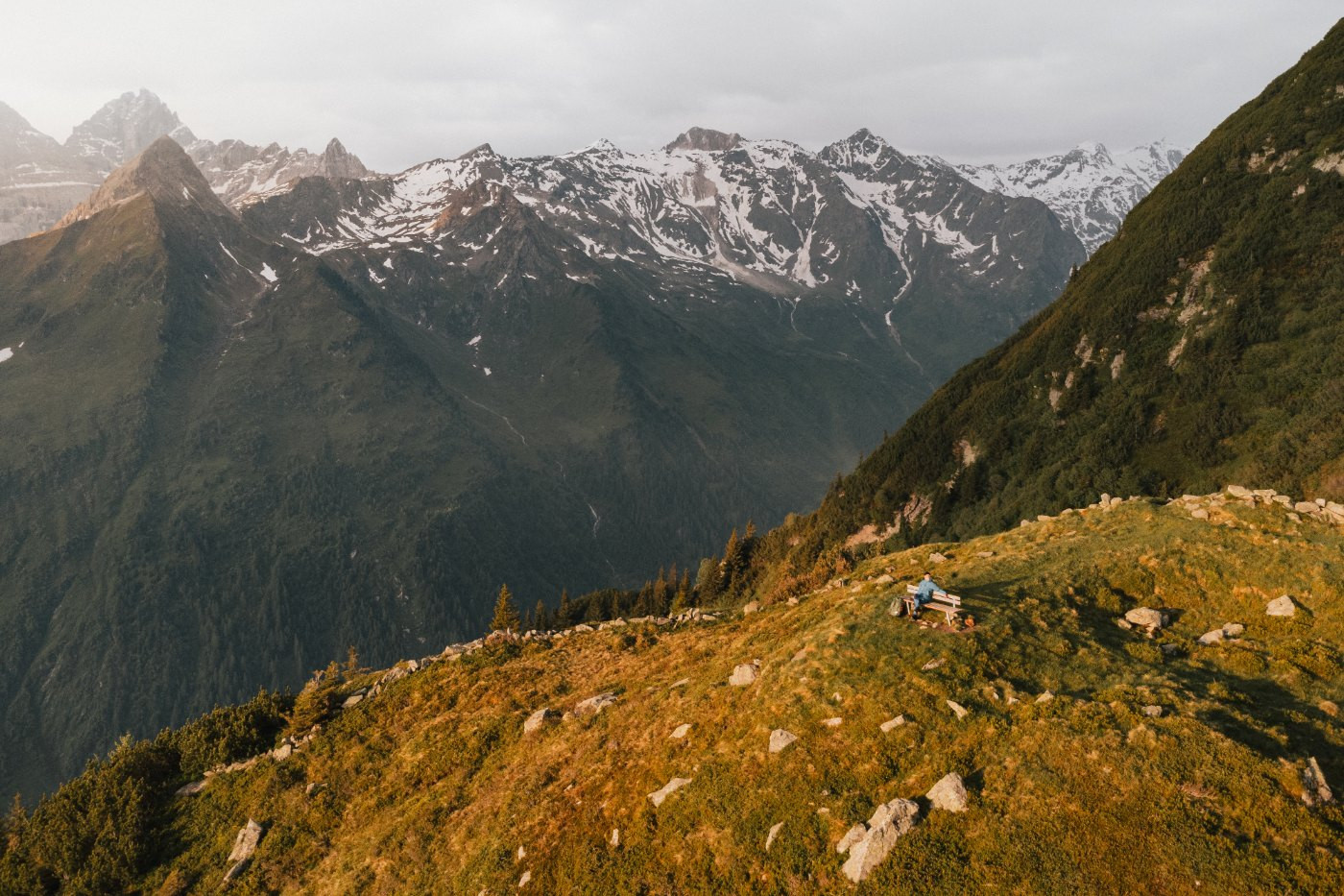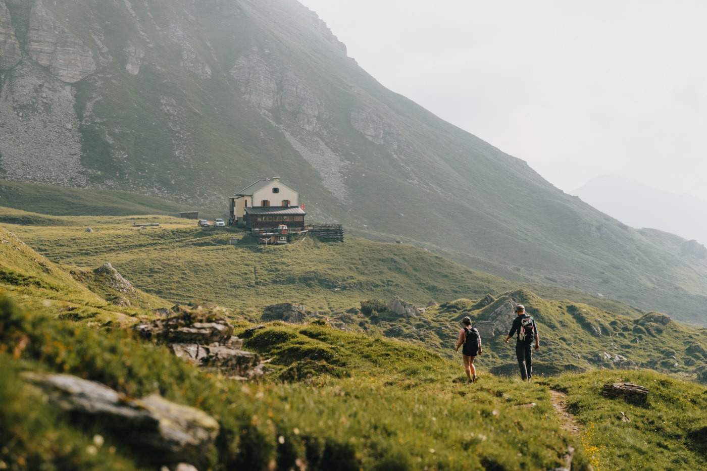Oder du entscheidest dich auf halber Strecke zur Issenangeralm für den Jubiläumssteig, der dich direkt zum Silbersattel bringt. Von dort sind es etwa 500 Höhenmeter Abstieg bis zu deinem Ziel. Beide Routen sind in Gehzeit und Höhenmetern ähnlich, doch der Jubiläumssteig stellt technisch die größere Herausforderung dar. Egal welchen Weg du wählst, die Ausblicke sind auf beiden atemberaubend. Diese Etappe ist zwar fordernd, aber auch landschaftlich ein Highlight. Am Abend erwarten dich ein leckeres Abendessen und eine Übernachtung im Lager.