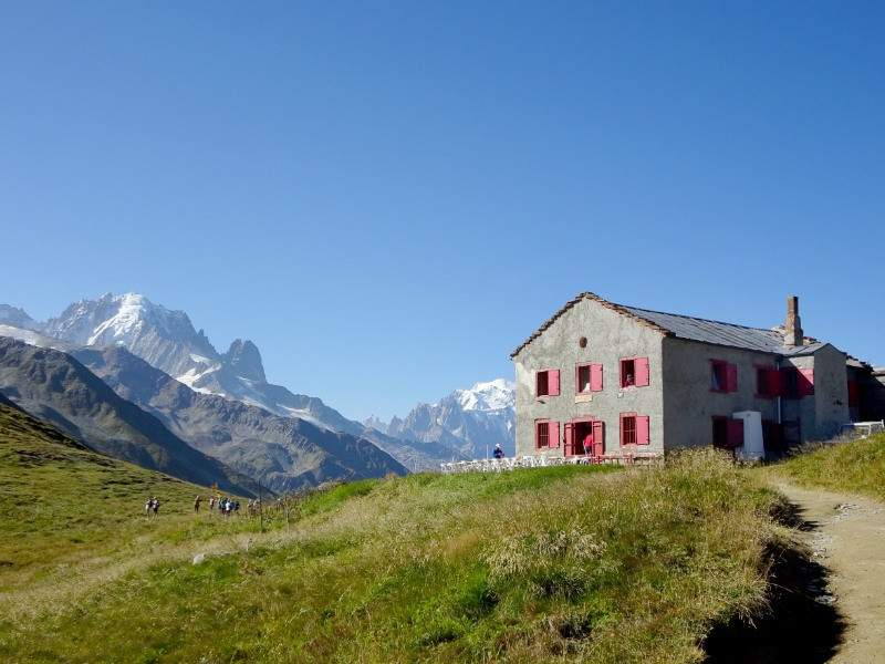 Früh am Morgen startest du mit eienr Busfahrt oder einem Transfer (saisonabhängig) nach Trient. Der erste Wandertag startet mit einem Anstieg auf den Pass Col de Balme (2.191m), wo du in einer urigen Bergsteigerhütte rasten kannst. Hier hast du schon fantastische Aussichten auf den Mont Blanc und das Tal von Chamonix! Der Abstieg führt dich hinunter in einen grasbewachsenen Sattel, hier gibt es Weidevieh und eine gemütliche Alm. Ein eindrucksvoller Kammweg über die Gipfelkuppe der l‘Aiguillete des Posetes führt durch felsiges Gelände mit gewaltigem Panoramablicken auf die umliegenden Gletscher.  Den Abstieg geht über einen steilen Wanderpfad, der später am Bergbach entlang zum Etappenziel führt. Ein traumhafter Tag inmitten der höchsten Bergriesen. Kürze Varinante zur Auswahl.
