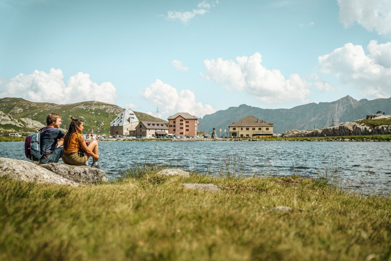 Heute führt dich der Weg auf einer kurzen Etappe entlang der berühmten Tremola-Straße bergab ins Tessin. Auf kunstvoll angelegten Serpentinen wanderst du hinunter nach Airolo und genießt den weiten Blick in die Leventina, wo sich die modernen Straßen als eindrucksvolle Kontraste zur historischen Route winden. Nutze den kurzen Wandertag und besuche zusätzlich das Gotthard-Museum. Du hast am Ende der Etappe den Schweizer Alpenhauptkamm in der überquert.