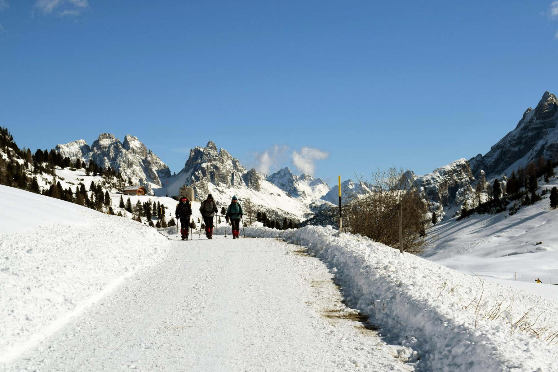Winterwandern in Südtirol. Abwechslungsreiche Routen im Angesicht der Dolomiten. Wandern im Sextenertal, Hochpustertal und auf dem Hochplateau Plätzwiese. Genieße die idyllische Winterlandschaft.