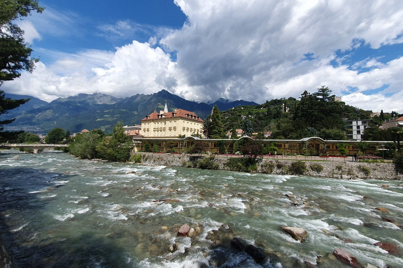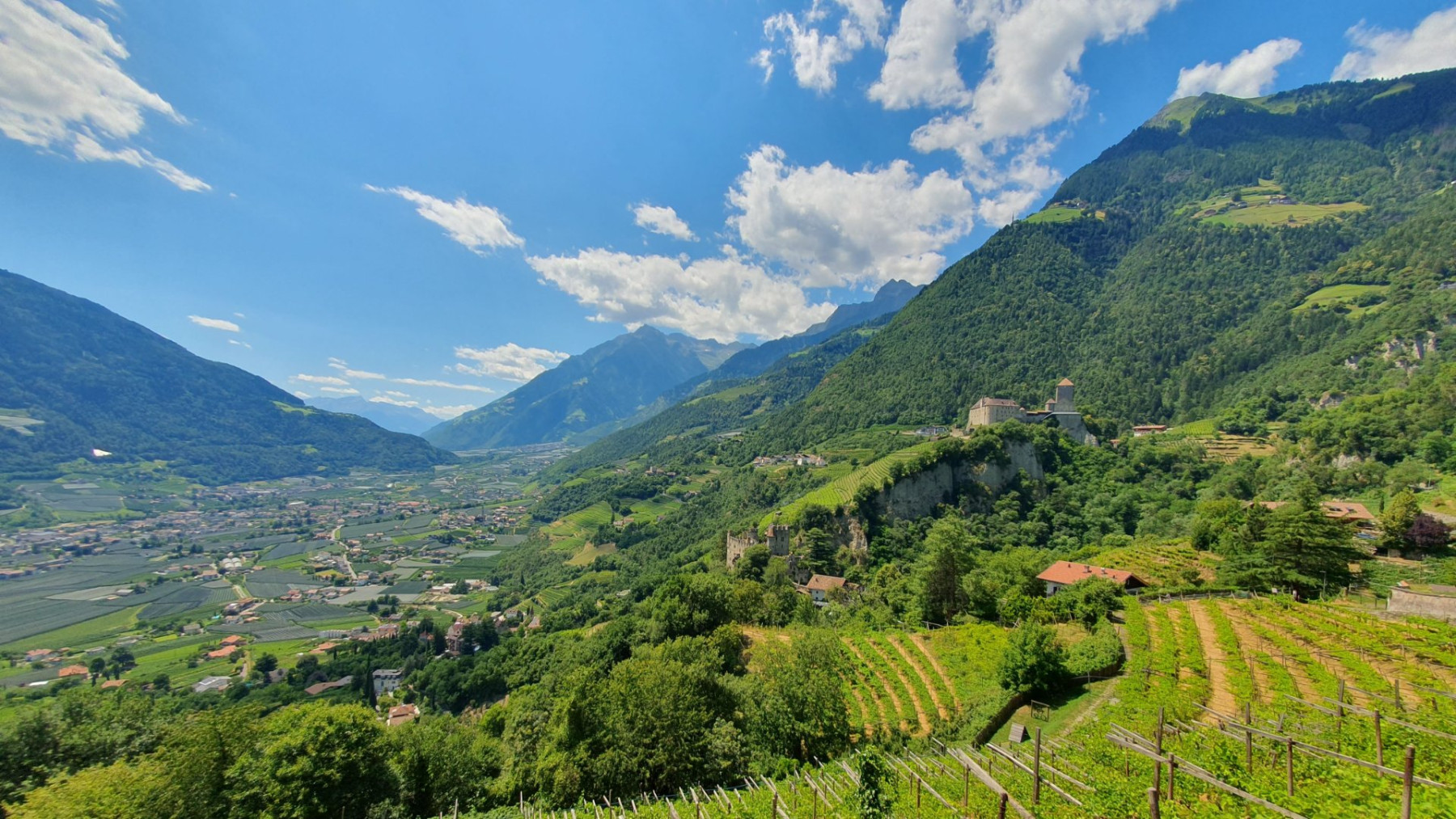 Ein kurzer Transfer bringt dich zum Meraner Höhenweg, einem der schönsten Panoramawege Südtirols. Von Anfang an genießt du einen spektakulären Blick auf den Talkessel von Meran und die umliegenden Weinberge. Der Weg führt vorbei an abgelegenen Bergbauernhöfen und urigen Gasthäusern – perfekt für eine kleine Stärkung. Schließlich erreichst du den Gipfel des Hochmuth (1.400 m) mit seinem gigantischen Ausblick. Nach einer Pause bringt dich die Seilbahn hinunter nach Dorf Tirol, wo die majestätische Burg Tirol thront. Weiter geht’s per Sessellift, vorbei an den ersten Palmen, direkt ins mediterrane Meran. Genieße das mediterrane Flair in der wunderbaren Kulturstadt im Herzen Südtirols. Schlendere durch die bezaubernden Laubengassen, oder wandele auf den Spuren von Kaiserin Sissi entlang der Passerpromenade.