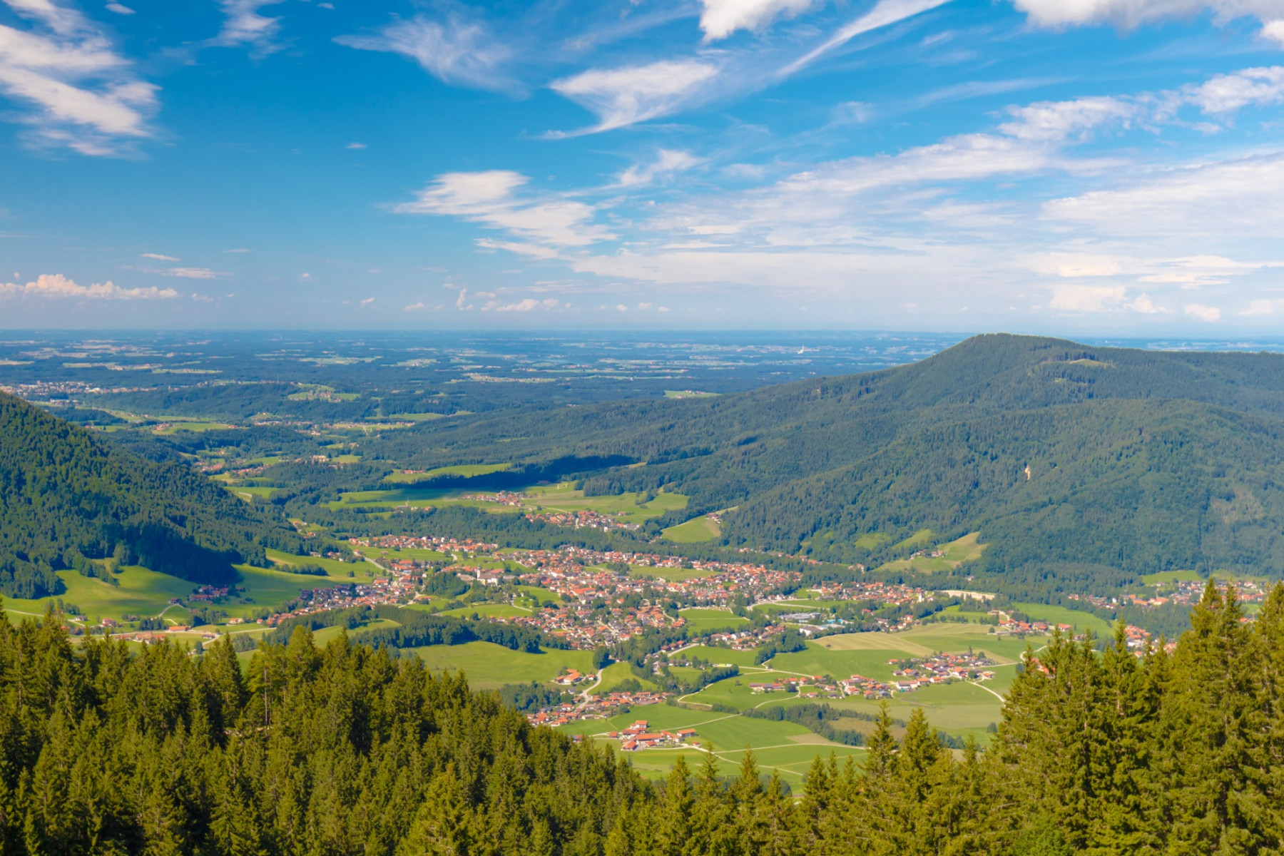 Nach dem morgendlichen Frühstück steht dir ein Transfer nach Bergen zur Verfügung. Dort erwarte dich eine Fahrt mit der Seilbahn auf die Gipfel des Hochfelln, der als Aussichtsterrasse des Chiemgaus bekannt ist. Schon während der etwa 20-minütigen Fahrt erhältst du einen ersten Eindruck von dem, was dich auf dieser Wanderung erwartet: eine beeindruckende Fernsicht auf die umliegenden Bergmassive, Dörfer und Landschaften sowie eine wunderbare Wanderung durch die alpine Landschaft des Hochfelln. Der Weg führt durch dichte Latschenkieferwälder, über weite Almwiesen und durch malerische lichte Wälder, während du stetig den Berg hinabsteigst. Unterwegs passierst du die bezaubernd gelegene Felln-Alm und setzt deine Wanderung später entlang der Farnböden-Alm fort. Im Verlauf der Route umrundest du den Reitstein, der auf einer Höhe von 1.250 Metern liegt. Weiter unten gelangst du schließlich zum märchenhaften Brandwald, der mit seinen zahlreichen Höhlen und Grotten nicht nur für die jüngeren Wanderer ein beeindruckendes Erlebnis darstellt. Folge nun den Wegweisern nach Ruhpolding, dem heutigen Ziel deiner Etappe.