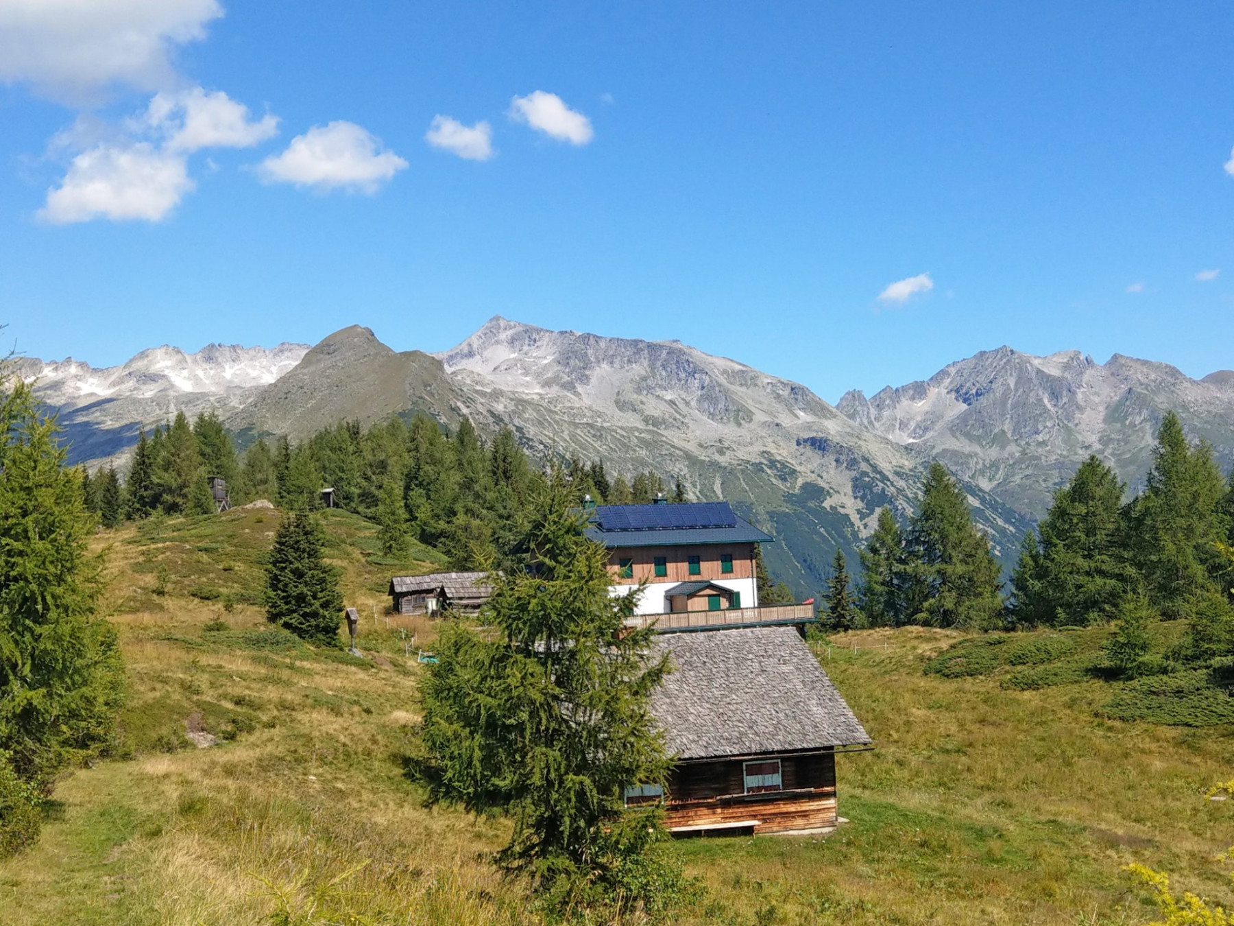 Am Morgen kurzer Transfer nach Maria Alm. Von dort steigst du hinauf zu den Pinzgauer Grasbergen, wo dich eine fantastische Höhenwanderung erwartet: Weitläufige Almlandschaften, urige Holzhütten und zahlreiche Panoramagipfel versprechen einen Wandertag wie im Bilderbuch. Der urtümliche Bergort Dienten am Fuße des majestätischen Hochkönigs ist das Ziel deiner heutigen Etappe.