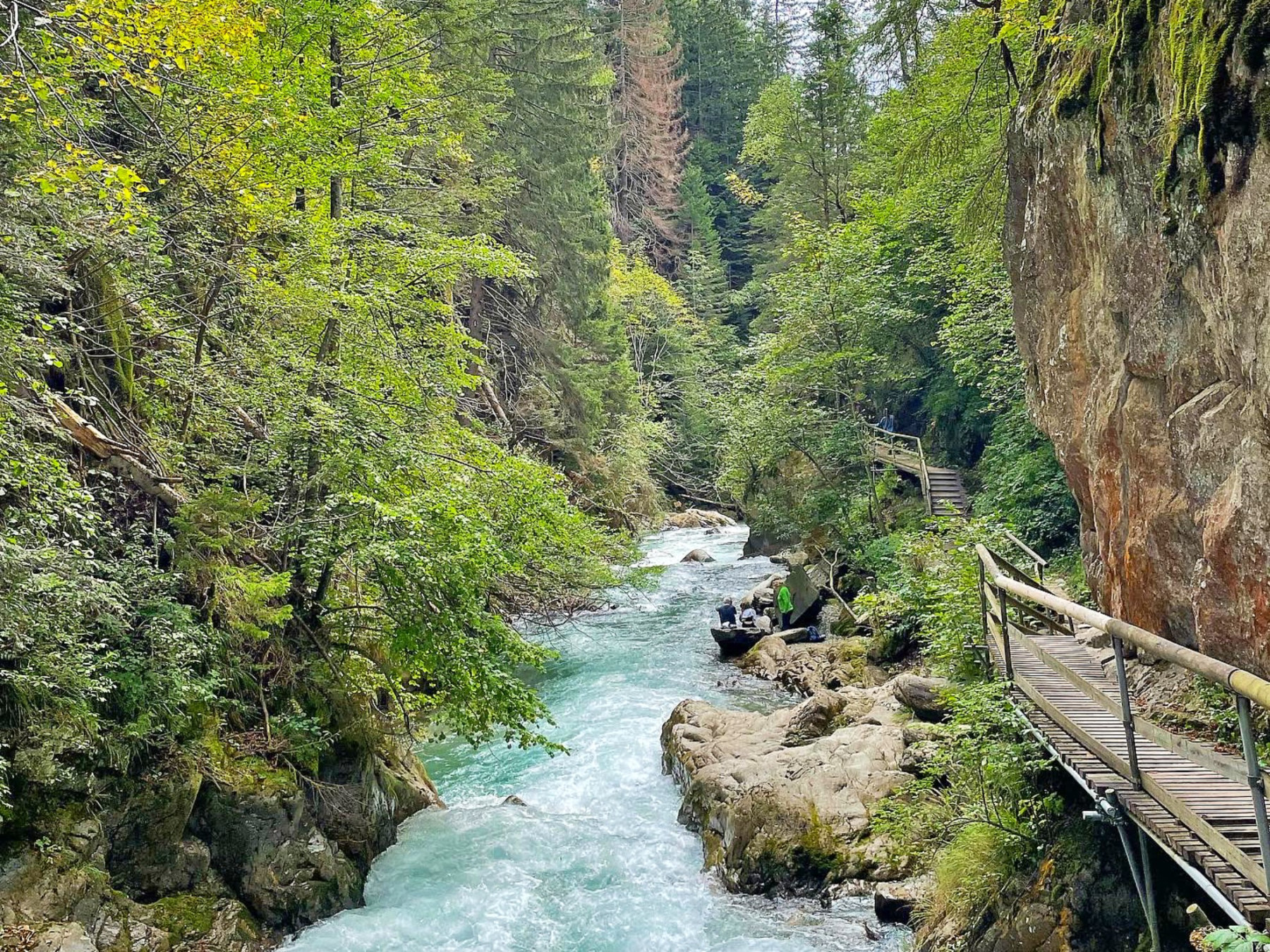 Transfer zum Startpunkt. Durch den romantischen Zauberwald zum idyllisch gelegenen Hintersee. Umgeben von steil aufragenden Felswänden immer tiefer hinein in den Nationalpark Berchtesgaden, ein ganz besonderes Naturjuwel. Über die Grenze nach Österreich, wo du am Almerlebnisweg talwärts an den rauschenden Wasserfällen der Seisenbergklamm vorbei bis nach Weißbach spazierst.