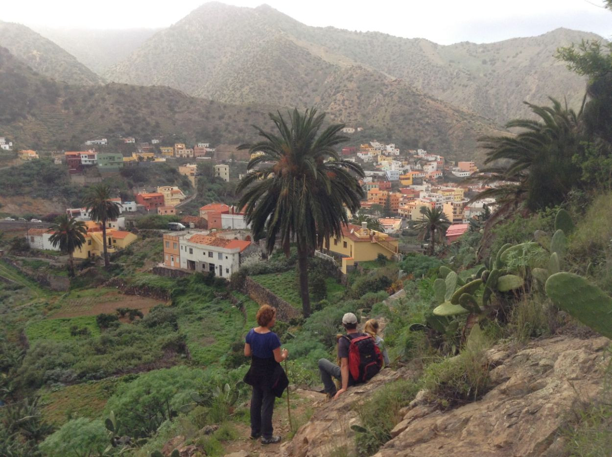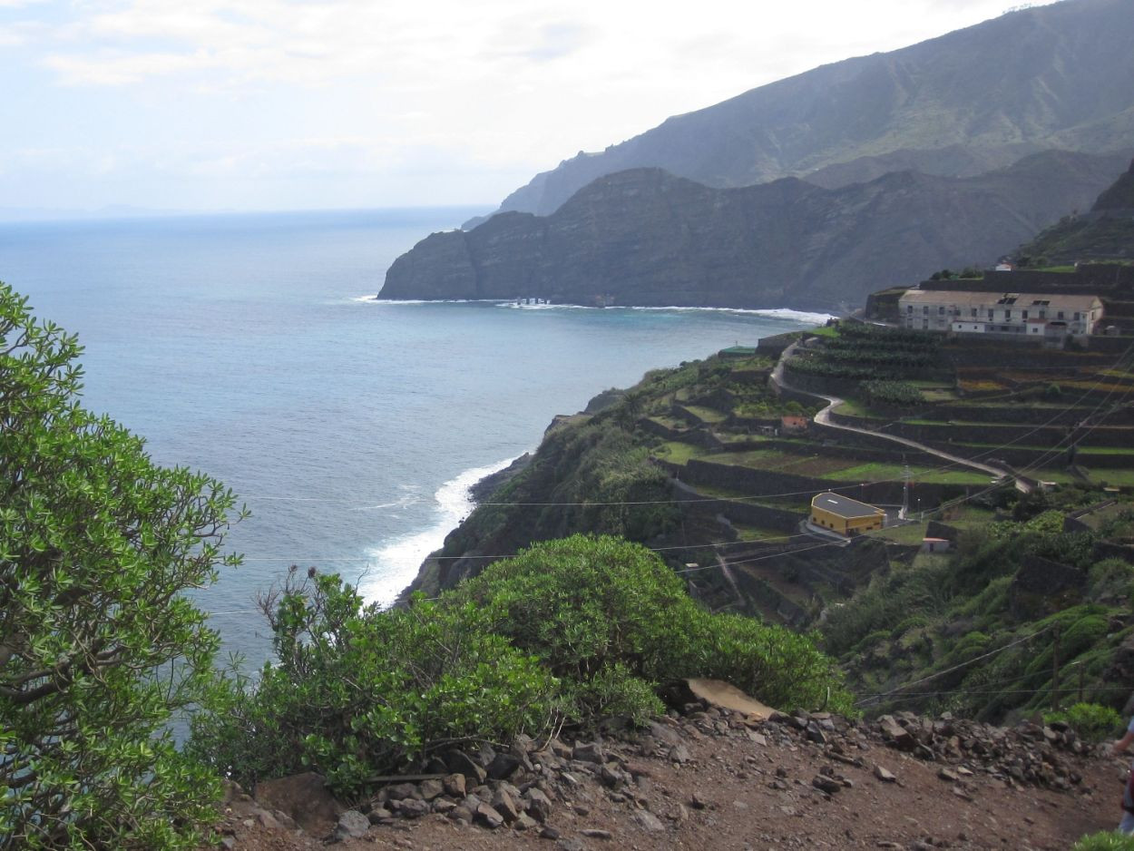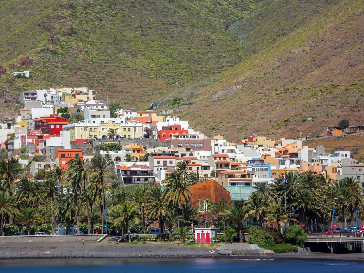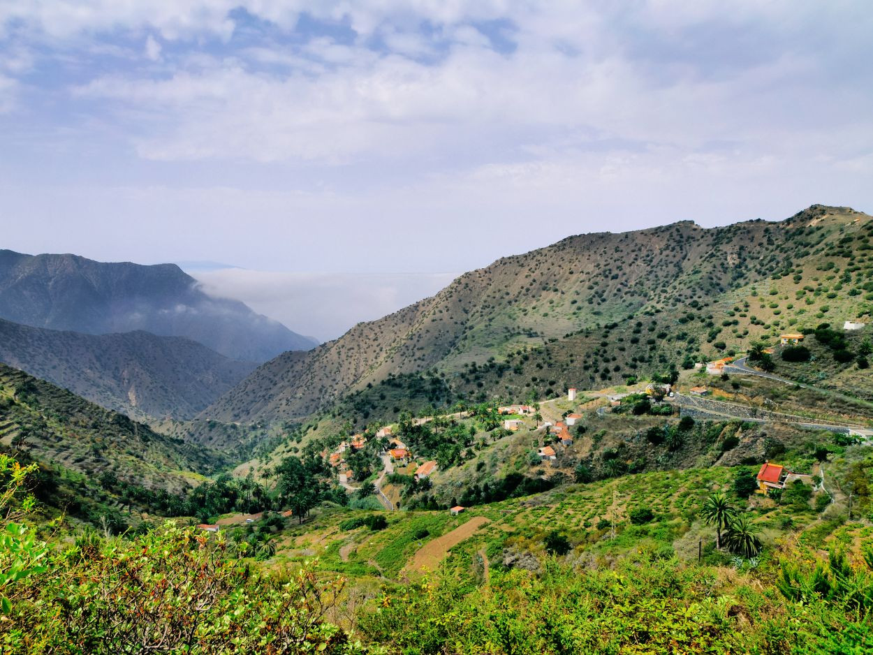 Eine Rundwanderung Richtung Norden, vorbei an einem verlassenen Dorf entlang der atemberaubenden Küste. Spektakuläre Ausblicke auf Teneriffa und den Teide. Du wechselst zwischen breiten Schotterwegen und steinigen Pfaden; alle sind gut markiert und an exponierten Stellen mit Holzgeländern gesichert. Der letzte Abschnitt führt durch Papaya- und Mangoplantagen im Tal.