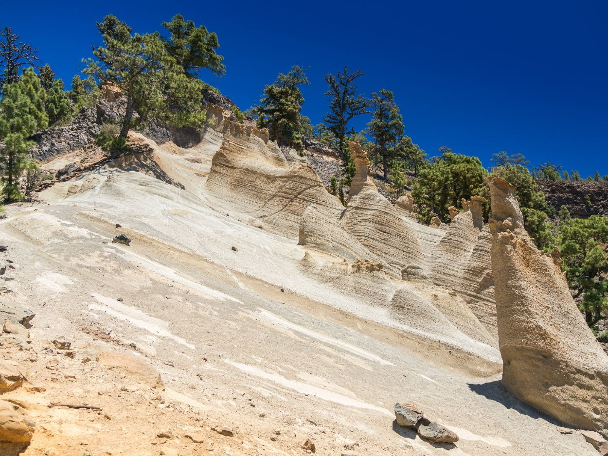 Nach einem kurzen Transfer (10 Minuten) startest du eine faszinierende Wanderung durch die "Mondlandschaft“ (Paisaje Lunar) nördlich von Vilaflor. Du folgst gut gepflegten und markierten Wegen durch angenehme Kiefernwälder mit beeindruckenden Ausblicken auf seltsame Vulkanfelsen und den Süden Teneriffas. Am Ende kehrst du zu Fuß zum Hotel zurück.