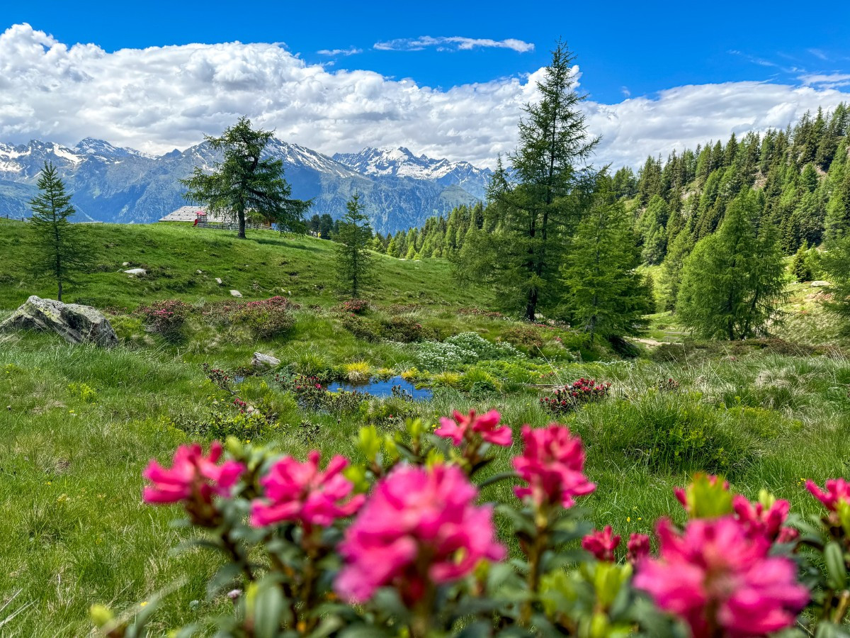 Mit der Gondel fahrt ihr nach Klammeben, wo die heutig Panoramatour startet. Vor euch liegen endlose Ausblicke über Südtirol. Unter dem Hirzer, dem höchsten Gipfel der Umgebung, führt der Weg über Fels- und Wiesenpfade bis zur Mahdalm. Kuhglocken und Almrosen begleiten euch beim Rückweg zur Hirzerhütte. Danach geht es mit der Seilbahn ins Tal und mit dem Bus nach Meran.