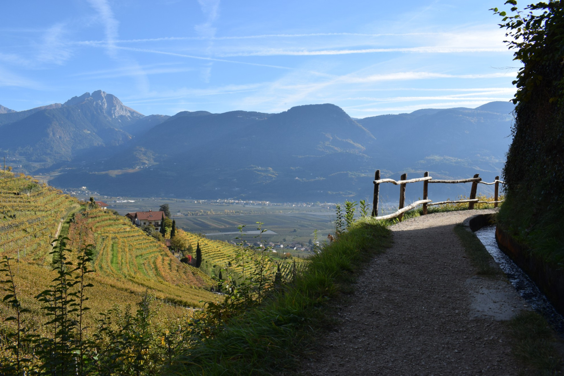 Nach dem Frühstück fährst du mit dem Zug nach Lana (Ticket inkl.). Kurz hinter Lana führt der Wanderweg entlang des berühmten Marlinger Waals - dem längsten aller Südtiroler Waale – zur Forst. Waale sind Bewässerungsgräben, die schon vor einigen hundert Jahren angelegt wurden, um trockene Flure mit Wasser zu versorgen. Heute führen entlang dieser Waale wunderschöne Wander- und Spazierwege. Unterhalb von Schloss Tirol folgst du dem berühmten Tappeiner Weg nach Meran. Schon Kaiserin Sissi wusste das milde Klima zu schätzen. Jahrhundertealte Laubengänge, und herrliche Parks laden zu einem gemütlichen Ausklang des Tages ein.