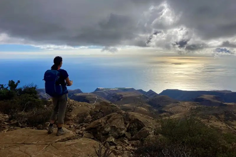 La Gomera zeigt Natur pur: tief eingeschnittene Schluchten, tropisch anmutende Täler und immergrüner Nebelwald. Im mystischen Garajonay erwarten uns moosige Baumriesen, murmelnde Bäche und am Gipfel ein Panorama bis zum Teide.