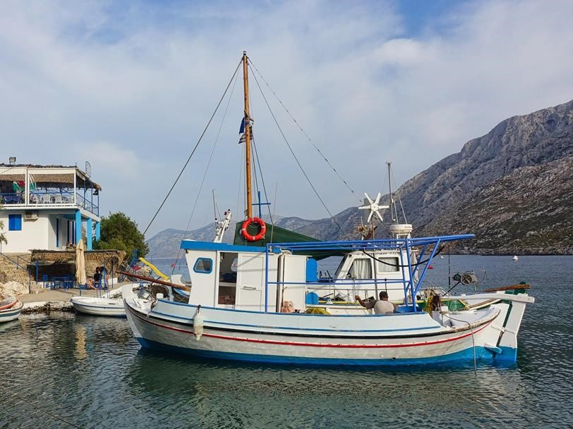 Ein Highlight der Woche ist die Trekkingtour auf der Nachbarinsel Telendos , welche in 10 bis 15 Minuten mit dem Boot erreicht wird. Diese war ursprünglich eins mit Kalymnos und wurde im Jahr 554 n. Chr. durch ein Erdbeben für immer von letzterer abgetrennt. Auch diese wunderschöne Etappe wurde zum allergrößten Teil von uns eingerichtet und rundet das Gesamterlebnis Kalymnos nicht nur ab, sondern macht Lust auf mehr. Das fantastische Frühstück wird uns auf der Terasse serviert und lässt keine Wünsche offen.