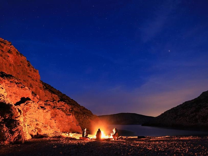 Übernachtet wird an zwei Tagen im Schlafsack, unter' m Sternenzelt in herrlich einsamen Buchten. Alle weiteren Abende verbringen wir in einem netten, sehr sauberen und gut geführten Studio, welches uns auch als Ausgangspunkt für alle weiteren Touren und als Stützpunkt dient. An den zwei einsamen Plätzen am Meer werden wir von einem einheimischen Fischerboot versorgt und genießen die bereits zubereiteten griechischen Spezialiäten. Anders von unserer Unterkunft aus - von dort werden wir jeden Abend die kulinarischen Besonderheiten der Insel in einem der umliegenden Restaurants ausprobieren und genießen.