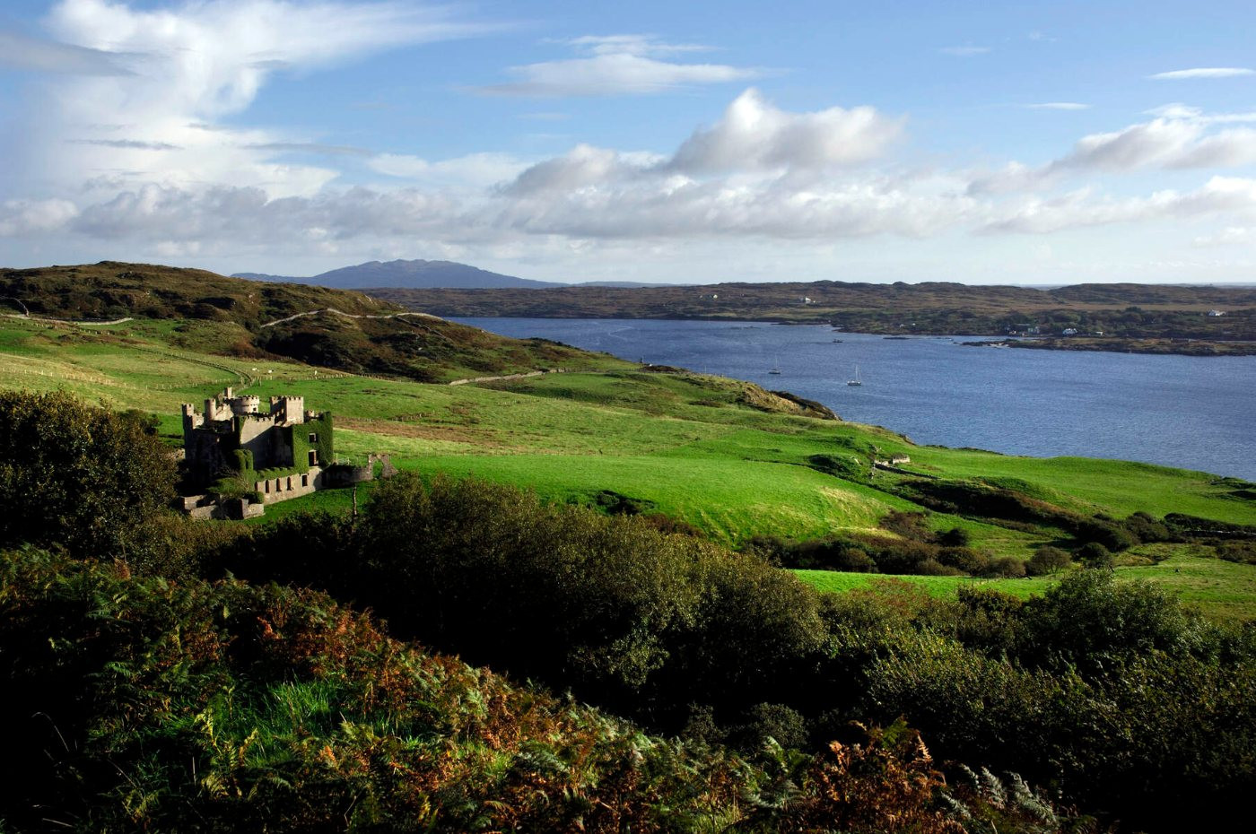 Zurück am Festland geht es nach Clifden, die lebendige "Hauptstadt Connemaras“. Bunte Häuser, gemütliche Cafés und Musik in den Straßen machen den Ort unverwechselbar. Ein Spaziergang zu den Ruinen von Clifden Castle belohnt dich mit herrlichen Ausblicken, und die legendäre Sky Road gilt als eine der schönsten Panoramastraßen Irlands.