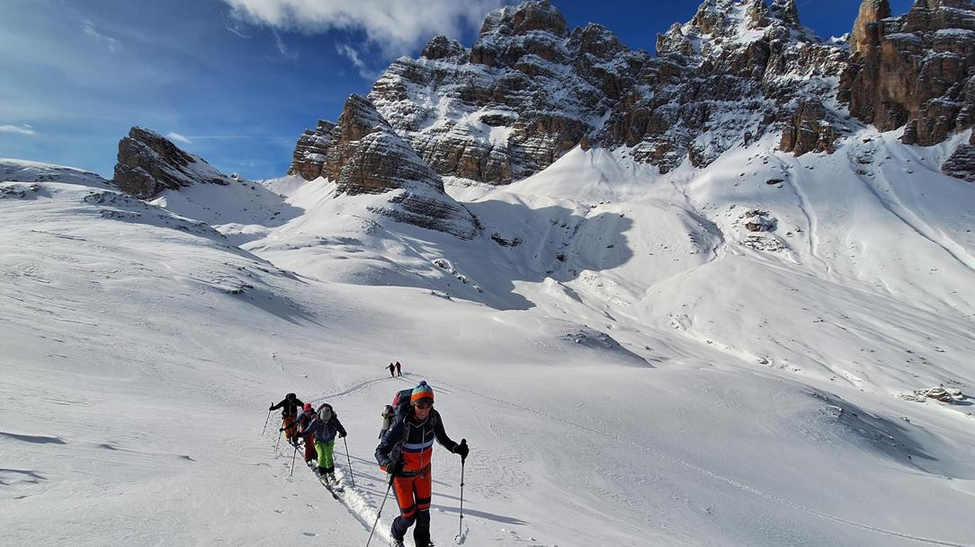 Wo Genuss draufsteht, muss Genuss drin sein! Auf einfachen bis mittelschweren Skitouren sind wir in der atemberaubenden Dolomitenlandschaft zwischen Drei Zinnen und dem Pragser Wildsee unterwegs, gefolgt von einer gemütlichen Einkehr, einem entspannenden Saunagang und einem stimmungsvollen Abendessen. Diese sanfte Art des Skibergsteigens verbindet Bewegung und Genuss auf ideale Weise. Gäste sollen sich um nichts kümmern müssen – einfach ankommen, genießen und wohlfühlen! In unserem gemütlichen Genuss-Hotel in Toblach im Hochpustertal bieten wir alles für einen gelungenen Winterurlaub: stilvolle Zimmer, traditionelle Südtiroler Gastfreundschaft und einen Panorama-Wellnessbereich. Jeden Tag wählen wir die besten Touren in den Dolomiten aus – angepasst an das Können und die Wünsche der Teilnehmer. Wir kennen die schönsten Abfahrten, frischen Pulverschnee und meistens unverspurte Hänge. Eine Skitourenwoche in den Dolomiten für Genießer.