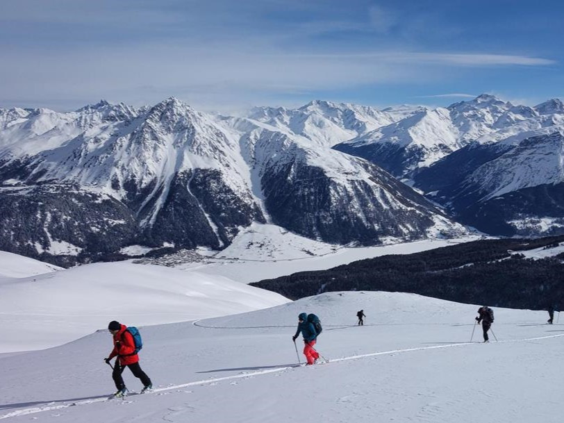 Im Umkreis unseres Hotelstandortes direkt am Reschensee finden sich eine Vielzahl an tollen Tourenmöglichkeiten: im Westen das Val Müstair und der Ofenpass, im Norden das Rojental mit seinen vielen Gipfelzielen, das hochgelegene Langtaufers im Osten mit einigen bis über 3000 m aufragenden Tourenzielen und die Region rund um das Stilfser Joch mit der Ortlergruppe im Süden. Unser Guide wird anhand der Wetterlage und der Schnee- und Lawinenverhältnisse für jeden Tag ein neues Ziel heraussuchen, wo wir unsere Spuren ziehen können.