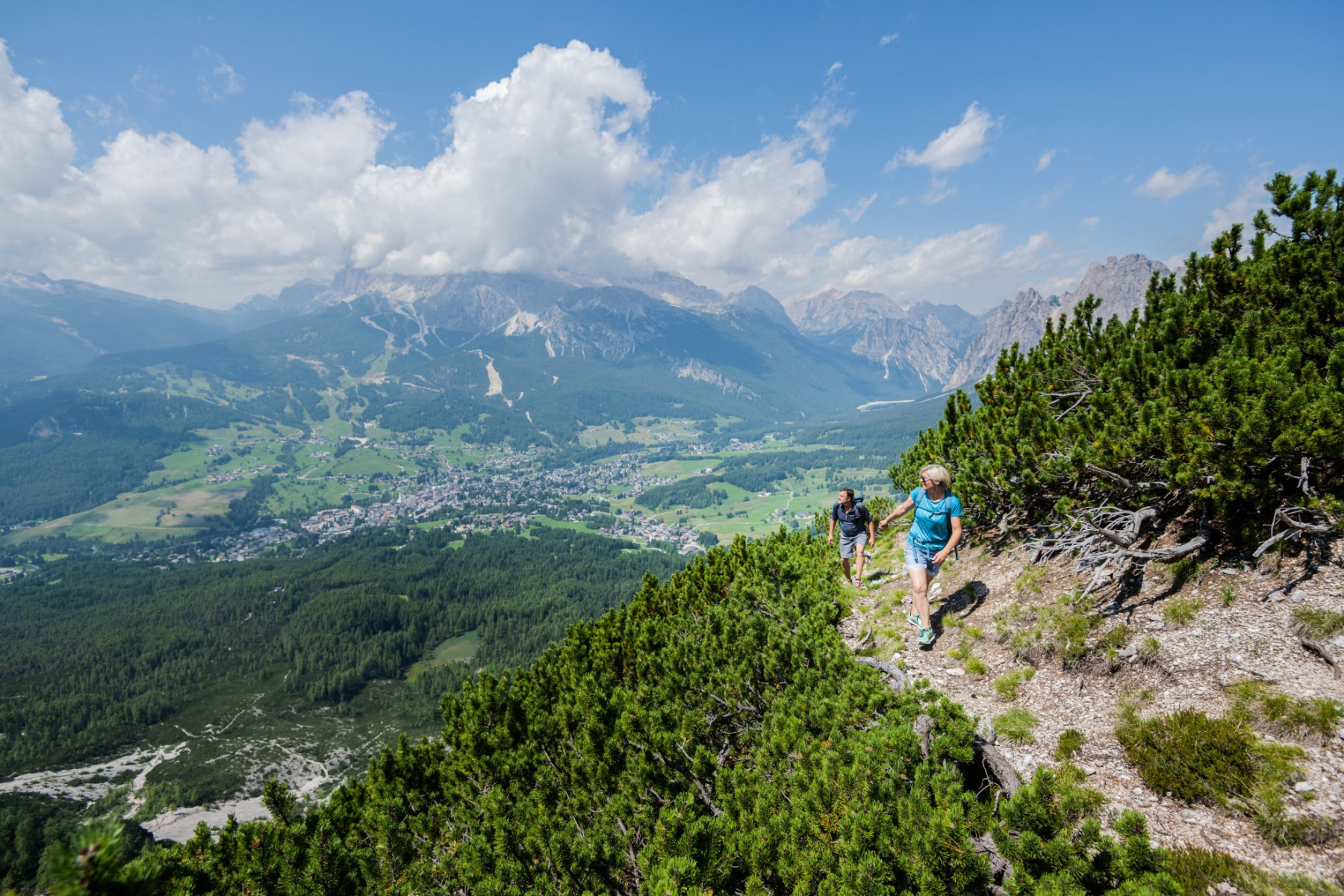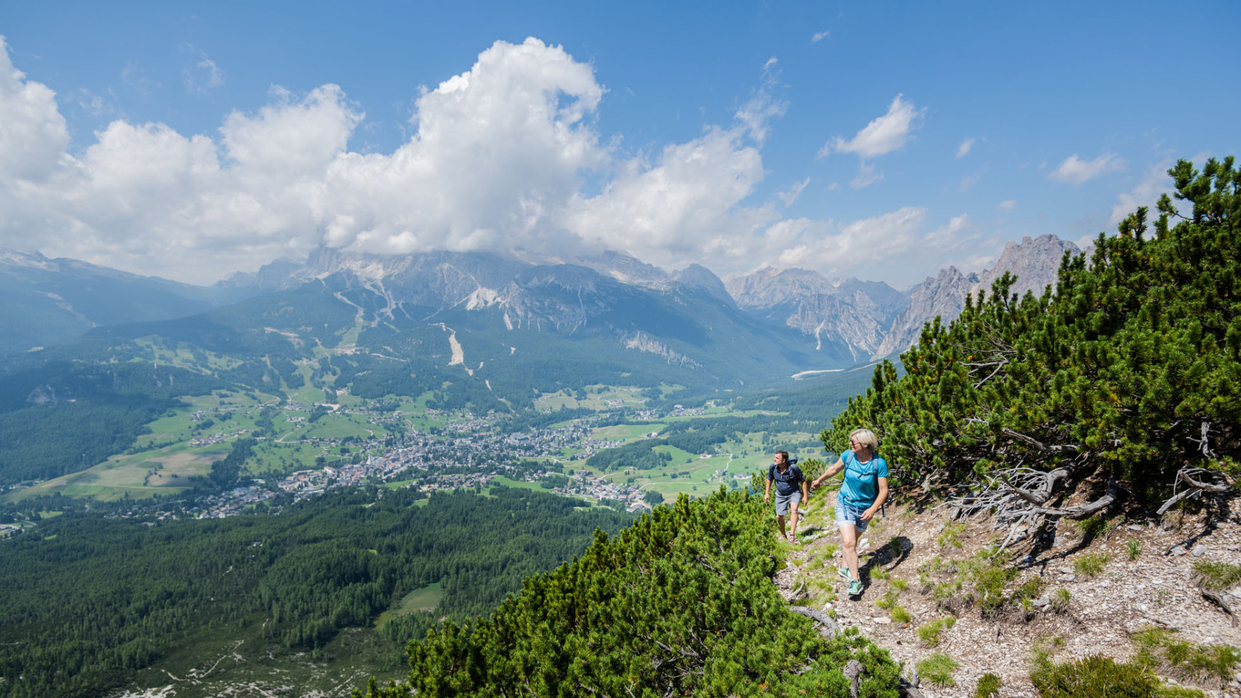 Das Panorama des Ausgangspunktes der Etappe ist schlicht und einfach umwerfend. Die gewaltigen Felsgiganten der Ampezzaner Dolomiten schieben sich hoch in den Himmel; der Monte Cristallo und die Cristallogruppe, die Tofane und die Fanesgruppe sind die Hauptdarsteller dieses Schauspieles. Es stehen dir zwei Touren zur Auswahl: eine etwas längere Tour Richtung Forcella Faloria oder die Variante über den Dolomieutrail. Beide führen Richtung Passo Tre Croci, der Abstieg in die Olympiastadt Cortina erfolgt auf demselben Weg. Lass dich verzaubern von der natürlichen Schönheit der faszinierenden Umgebung, der imposanten Dolomitengipfel. Verschiedene Varianten für diesen Tag vorhanden.