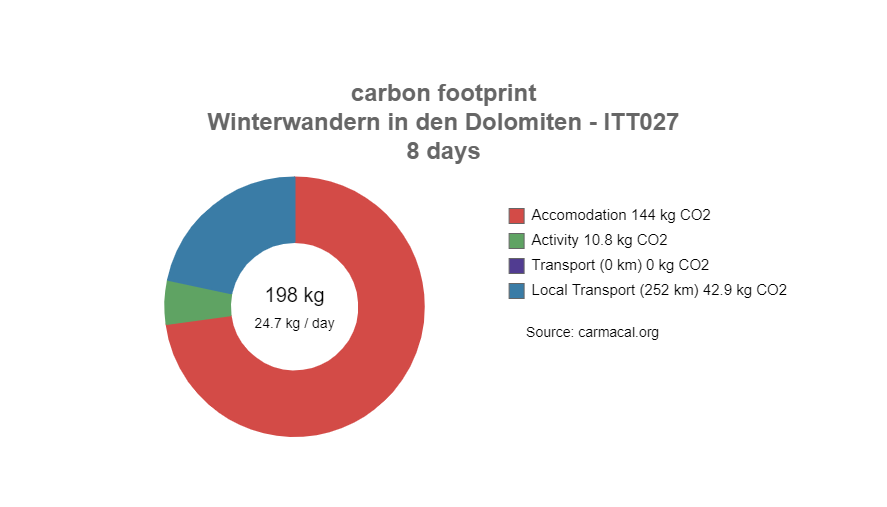 Die Mitnahme von Schneeschuhen und Wanderstöcken kann auf einigen Etappen hilfreich sein. Auf Anfrage können diese auch vor Ort ausgeliehen werden und ebenfalls Schneeketten (Grödeln, Snowspikes) für die Schuhe.