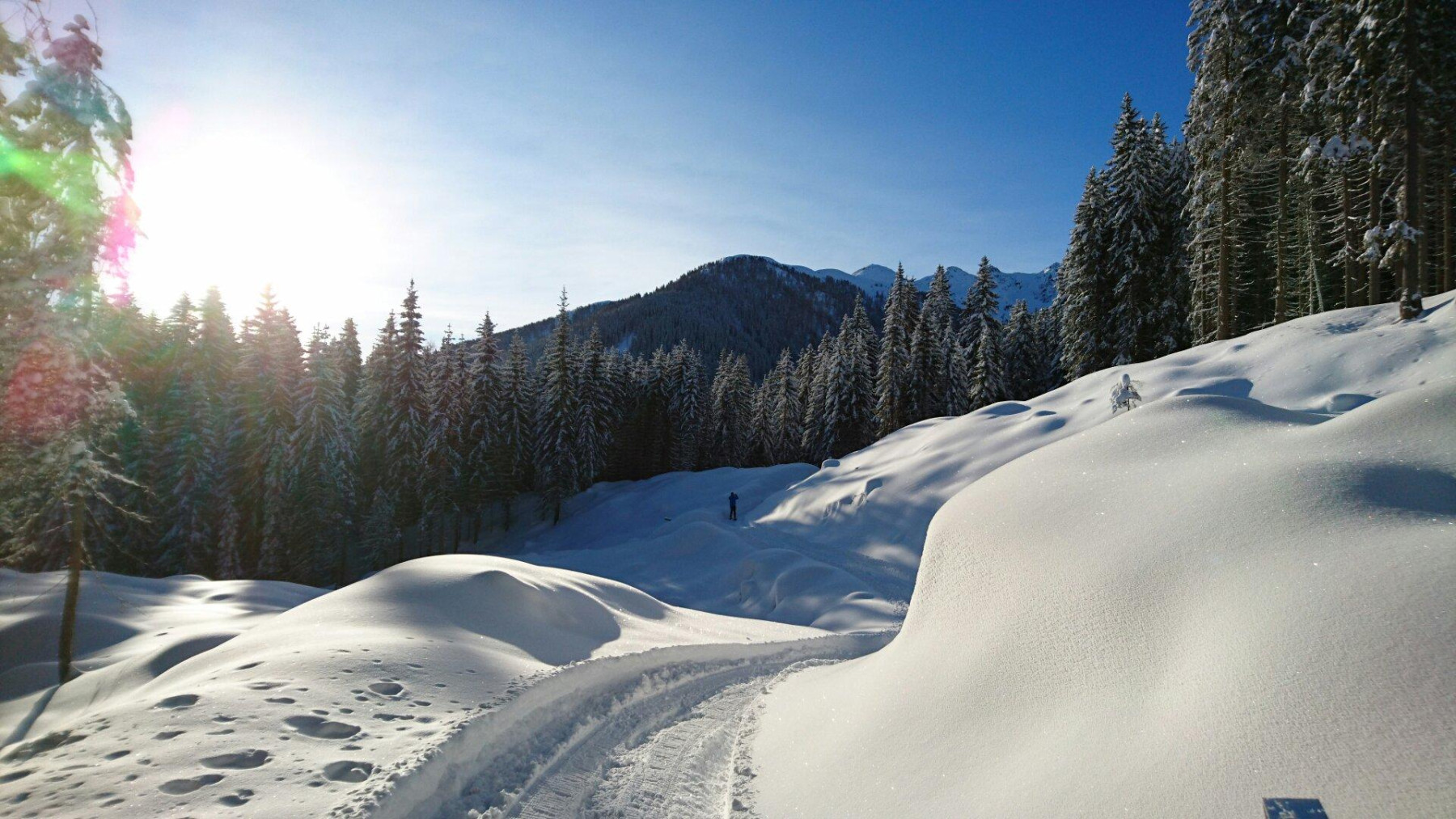 Durch winterliche Lärchenwälder zur Dreischusterhütte