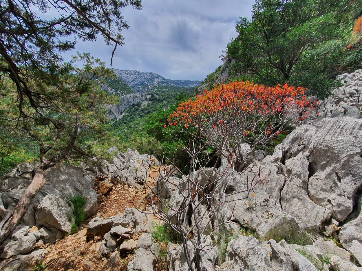 Heute tauchst du in dichte Steineichenwälder ein, die die unteren Hänge der imposanten, 800 Meter hohen Kalksteinfelsen des Supramonte umarmen. Mehrmals öffnet sich der Blick auf die grandiosen Täler von Oliena und Guthiddai. Für die Abenteuerlustigen gibt es eine Herausforderung: Wer mag, kann den steilen, steinigen Hang der Scala di Sovana erklimmen und bis zur Punta Cusidore vordringen. Weiter oben auf dem Supramonte wartet die geheimnisvolle Grotta Orgoi darauf, entdeckt zu werden. Am Ende der Tour kannst du noch zwei Kilometer weiter zur beeindruckenden Karstquelle Su Gologone wandern – ein tiefblaues Naturwunder und die wichtigste Wasserquelle Sardiniens. Du hast ein längere und eine kürzere Variante zur Wahl.