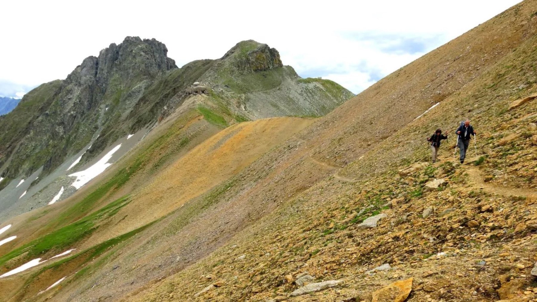 Vom Colle d’Esischie aus begeben wir uns auf eine aussichtsreiche Wanderung zum Monte Tibert. Der sanft verlaufende Grat ermöglicht großartige Panoramablicke: im Süden auf das Argentera-Massiv, im Norden auf den Monte Viso und im Westen auf die Rocca de la Meja.
