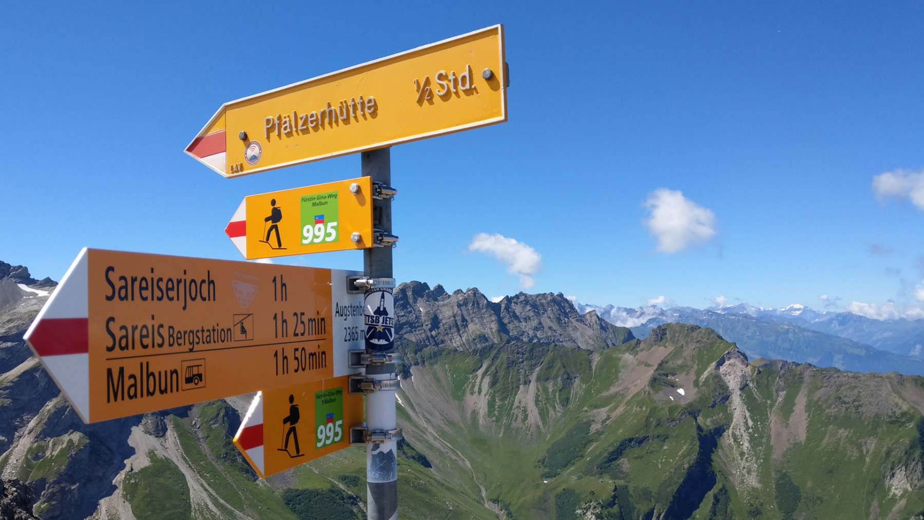 Der Klassiker schlechthin! Der Fürstin Gina Weg ist die Liechtensteiner Traumtour par excellence. Mit der Seilbahn schaukelst du zuerst gemütlich zum Sareiser Joch und wanderst über den Gipfelgrat zum Augstenberg mit über 2.300m Höhe. Ein schöner Bergpfad führt weiter zur Pfälzerhütte des Liechtensteiner Alpenvereins, genau am Joch gelegen. Hier lohnt natürlich die Rast auf der Sonnenterrasse umgeben von den höchsten Gipfeln. Wer noch Energie hat, kann nachmittags den Dreiländerberg auf der Grenze zu Österreich und der Schweiz erklimmen. Dein Gepäck kann nicht auf die Pfälzerhütte transportiert werden. Es bleibt in deinem Hotel in Malbun und kann am nächsten Tag dort abgeholt werden, bevor du nach Hause fährst. Zur Übernachtung benötigst du einen Hüttenschlafsack. Es gibt eine leichtere Variante für diesen Tag.