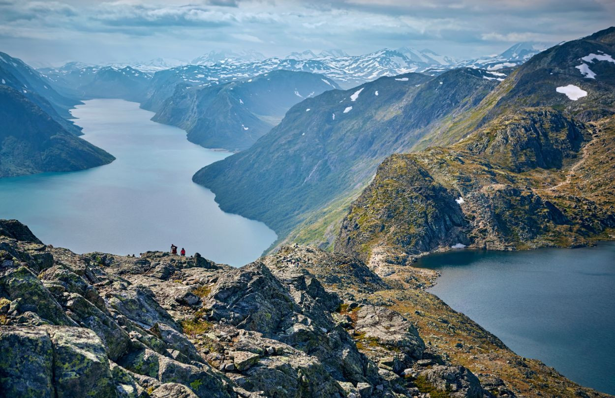 Du startest direkt mit einer der anspruchsvolleren Wanderungen, bereits am ersten Tag sind über 20 km von Gjendesheim nach Glitterheim geplant! Aber keine Sorge, du wirst die Möglichkeit haben, die unberührte Natur Norwegens auf verschiedenen Wegen zu bewundern. In der Spiterstulen-Berghütte kannst du deinem Körper eine wohlverdiente Pause gönnen oder deine Wanderfähigkeiten auf die Probe stellen: Warum nicht bis zum höchsten Gipfel des Landes, dem Galdhøpiggen, aufsteigen? Am nächsten Tag ist es Zeit für Farbkontraste auf niedrigeren Lagen. Du steigst ab zum Gjendesee und dem Besseggen-Kamm, einem bei Norwegern beliebten Wandergebiet. Von Gjende aus machst du eine kurze Bootsfahrt nach Memurubu, zum nächsten Wanderabenteuer! Auch wenn er nicht so hoch ist wie die vorherigen Gipfel, hat Besseggen viele Bewunderer und steht in puncto Herausforderung höheren Bergen in nichts nach.