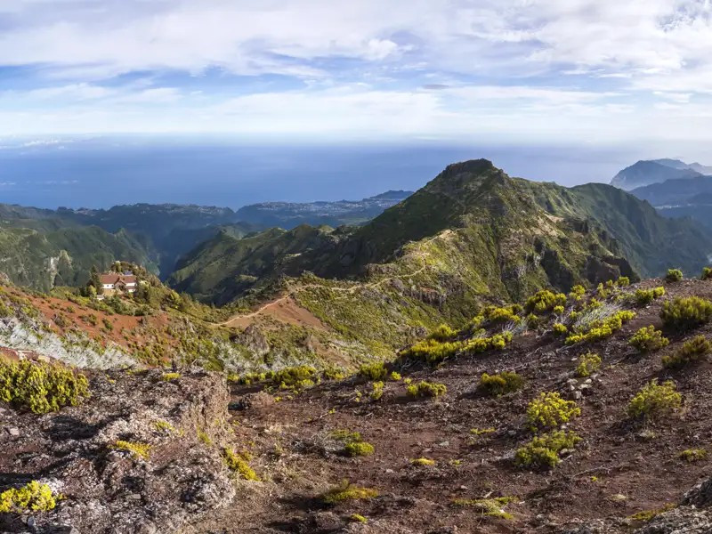 Heute geht es hoch hinaus, mitten in die Bergwelt Madeiras. Nach dem Frühstück verstauen wir unser gesamtes Gepäck im Bus und fahren auf den Pico do Arieiro (1.810 m), den dritthöchsten Berg der Insel. Während der Anfahrt bekommen wir einen guten Eindruck von den unterschiedlichen Vegetations- und Klimazonen der Südküste. Dann schnüren wir die Wanderschuhe. Auf einem sorgfältig angelegten, gut gesicherten Höhenweg wandern wir im stetigen Auf und Ab zwischen den Felsgipfeln. Vielleicht entdecken wir unterwegs das gelbe Madeiraveilchen, eine botanische Kostbarkeit in dieser alpinen Bergwelt. Dann ist es nicht mehr weit - der Gipfel des Pico Ruivo (1.862 m), der höchste Punkt der Insel, ist schon in Sichtweite! An klaren Tagen ist die Aussicht von oben prachtvoll: rau und zerklüftet türmen sich die Berge vor uns auf. Anschließend steigen wir ab zur Achada do Teixeira. Hier wartet schon der Bus und bringt uns zu unserer neuen Unterkunft.