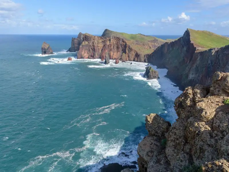 Heute geht es zum Cabo São Lourenço, dem Ostkap. Baumloser, steppenartiger Bewuchs und bizarre Felsformationen prägen die Landzunge. Die zunächst unscheinbar wirkende, Trockenheit liebende Küstenvegetation hat ihren ganz eigenen Reiz. Unser Weg führt über karge Wiesen und vulkanischen Fels. Bei gutem Wetter genießen wir herrliche Ausblicke auf die Nachbarinseln, die Ilhas Desertas, und das anbrandende Meer. Zur Mittagsrast suchen wir uns ein geeignetes Plätzchen. Anschließend wandern wir wieder zurück zu unserem Ausgangspunkt. Abends gehen wir in einem lokalen Restaurant essen.