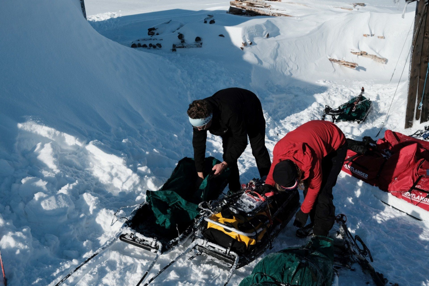 Du erhältst von uns einen wasserdichten 110-Liter Sack, in dem du deine persönliche Ausrüstung und Schlafsackaufbewahren können. Dieser Sack kommt mit auf die Pulka (leichter Lastschlitten).