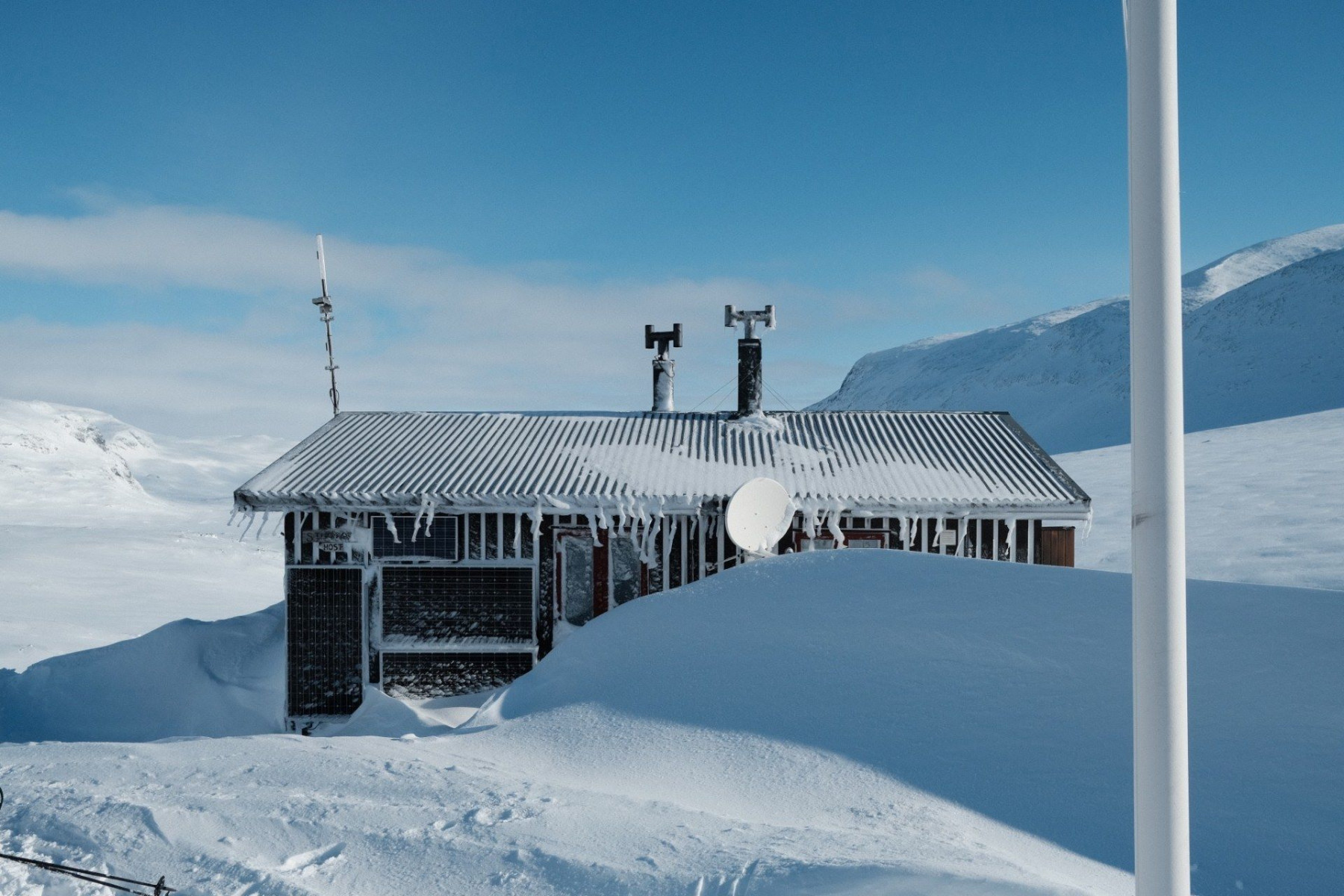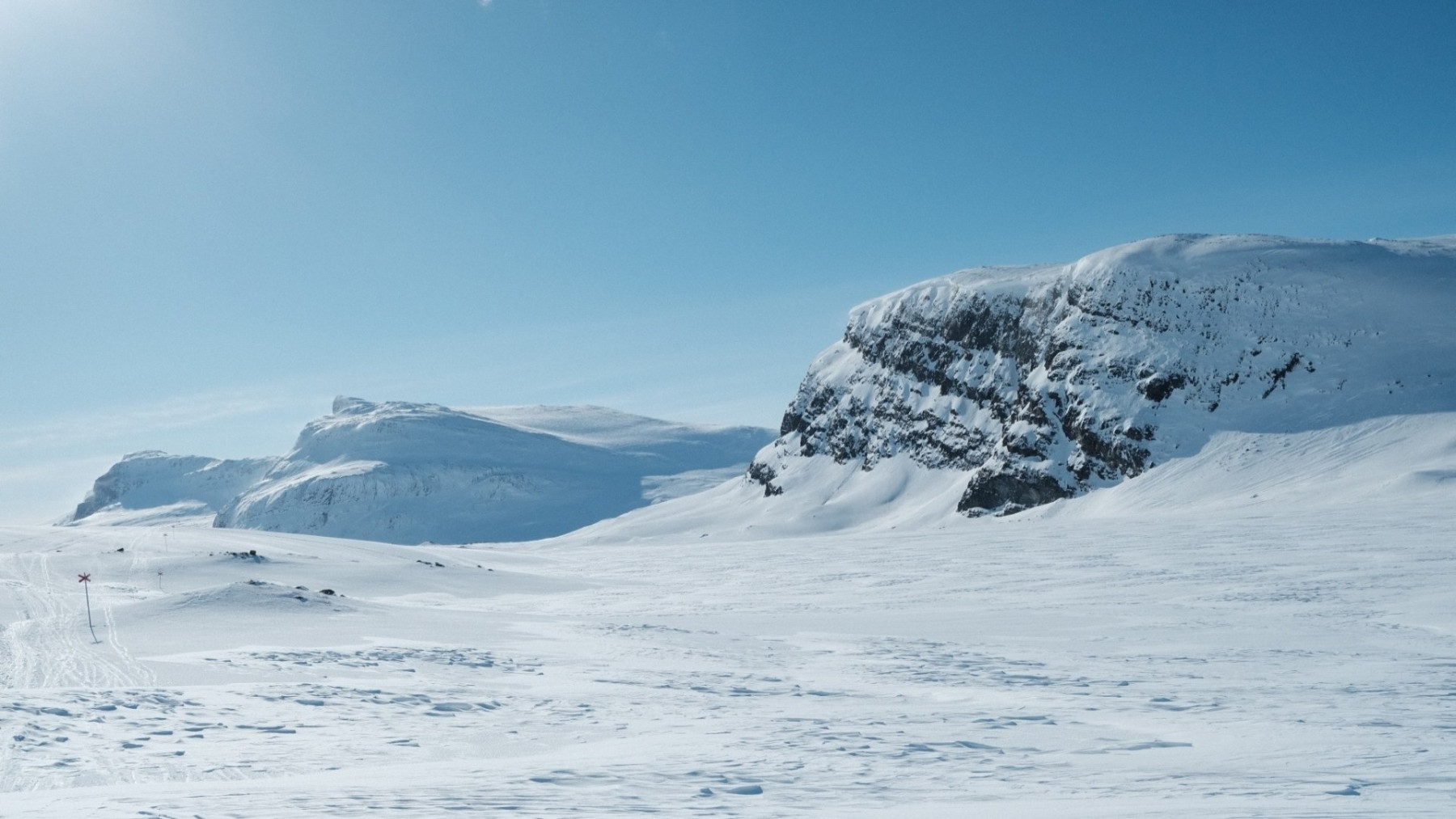 Vorbei an der beeindruckenden Steilwand des 1.330 m hohen Unna Avrik erreichen wir ein zugefrorenes Sumpfgebiet und laufen weiter zum See Kaitumjaure. Auf den Berghängen nahe der Hütte sind oft Elche zu beobachten, die hier Schutz suchen. Die Hütte ist mit einer holzbeheizten Sauna ausgestattet.