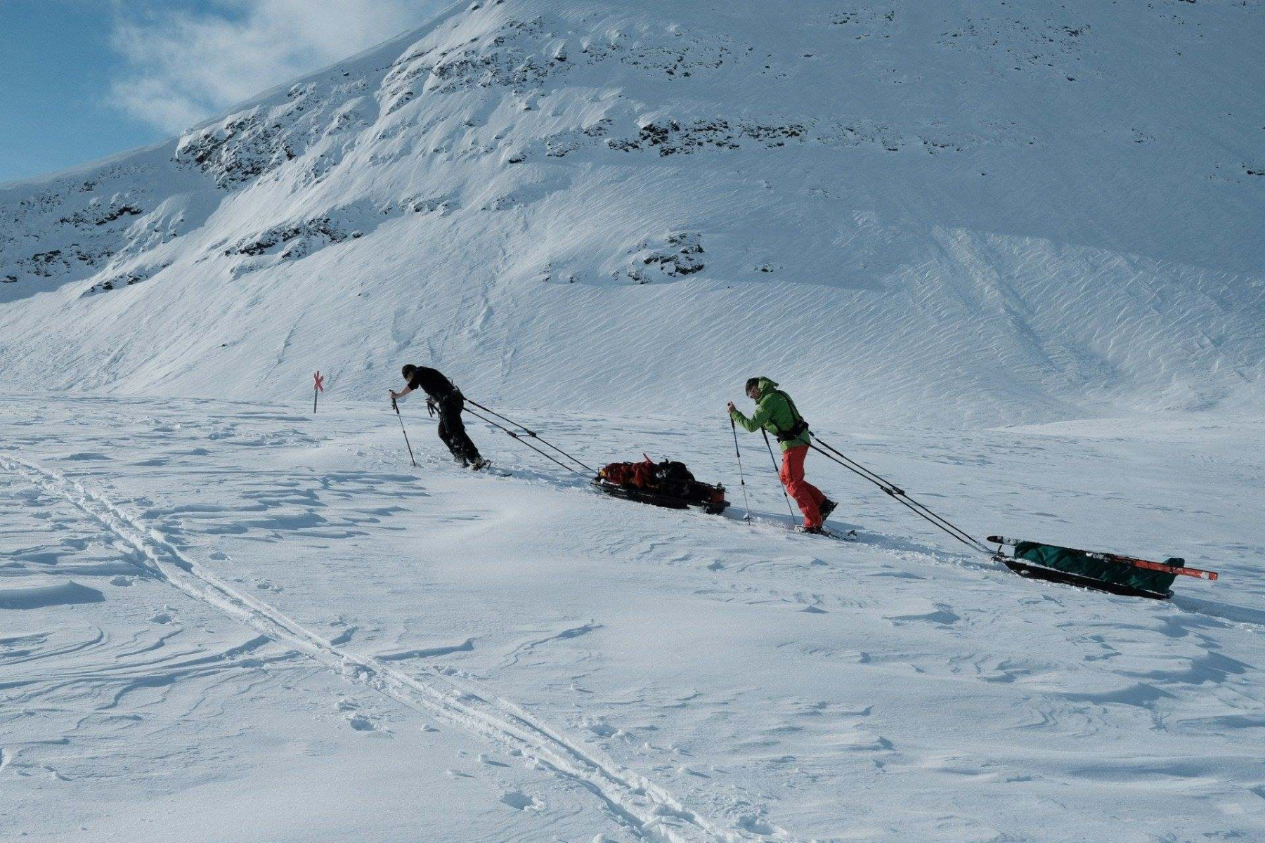 Bei einer 14-Tagetour nimm einfach etwas mehr Kleidung mit. Ein größerer Rucksack ist nicht erforderlich, weil die Kleidung in einem wasserdichten 110 Liter großen Sack auf der Pulka transportiert wird.