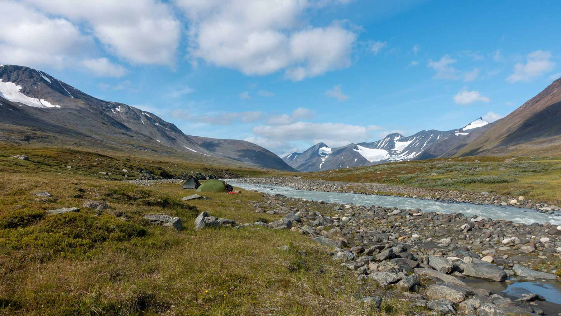 Das Trekkinggebiet liegt oberhalb des Polarkreises und wird auch als die letzte Wildnis Europas bezeichnet, eine der eindrucksvollsten Gebirgsregionen Skandinaviens. Eine Trekkingtour in diesen beeindruckenden Bergen ist ein Traum für viele Wanderer und ganz sicher unvergeßlich. Wir bewegen uns abseits der bekannten Wege und lassen die Zivilisation hinter uns. Tauchen ein in die Einsamkeit der Wildnis und erleben die gewaltigen Bergmassive und Gletscher Lapplands hautnah. Wir starten zu einer Rundtour, die vorbei führt am mächtigen Bårde-Gletscher, folgen den Hochebenen, vorbei an blauen Seen und über wilde Bergflüsse. Wir werden einen namenlosen Berg besteigen, von dem wir einen beeindruckenden Blick auf das Delta des Flusses Rapaädno haben, einfach ein unvergesslicher Ausblick und das Highlight des ganzen Gebietes.