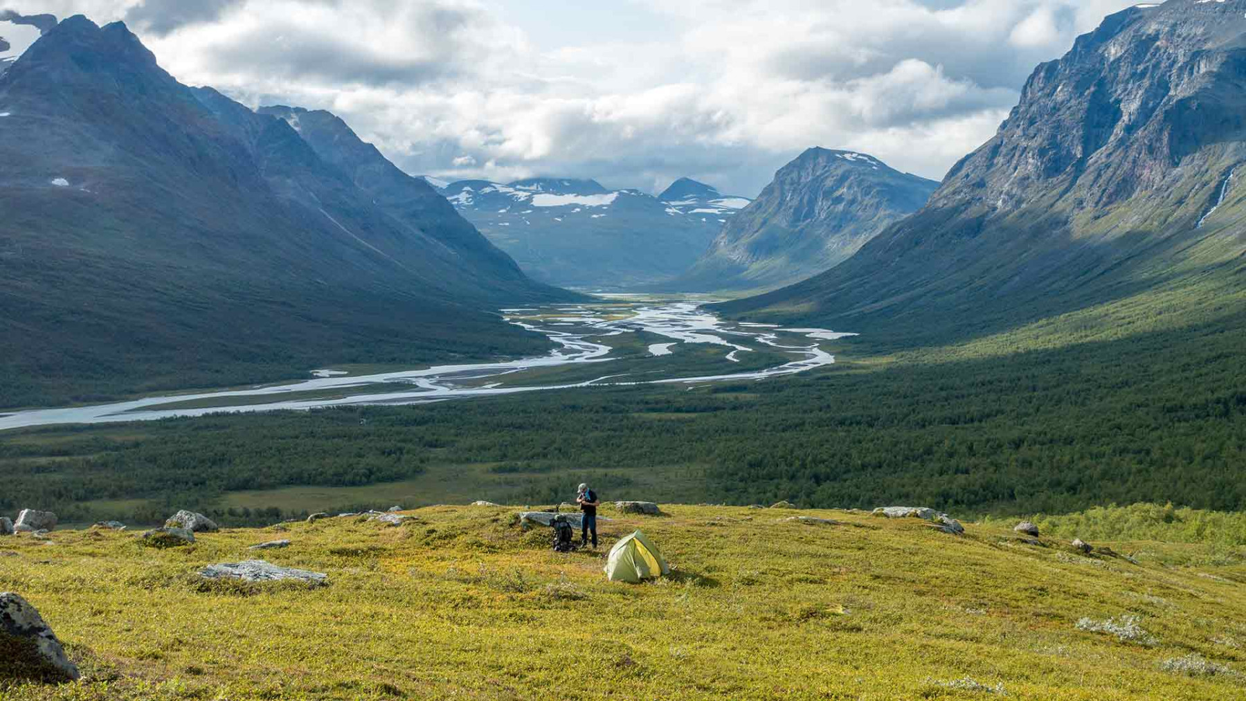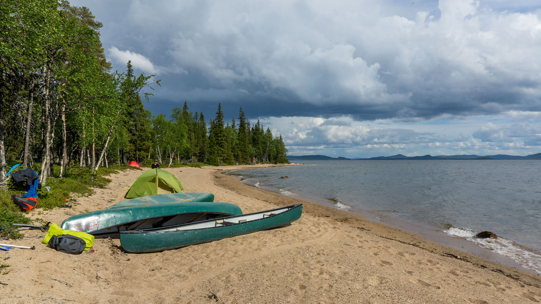 In der warmen Mitternachtssonne sitzen wir vor unseren Zelte und blicken über eine unendliche Bergwelt und riesige Wälder. Weiße Sandstrände, glasklares Wasser, ein knisterndes Lagerfeuer, auch das wartet auf uns in diesem Urlaub. Erlebe die unberührte Natur Lapplands zu Fuß und vom Kanu aus. Mit uns wanderst du durch unberührte Bergwelt, abseits der Zivilisation. Du genießt die spektakulären Gletscher und Täler des Sarek-Nationalparks und den Blick auf das riesige Delta des Flusses Rapaädno.