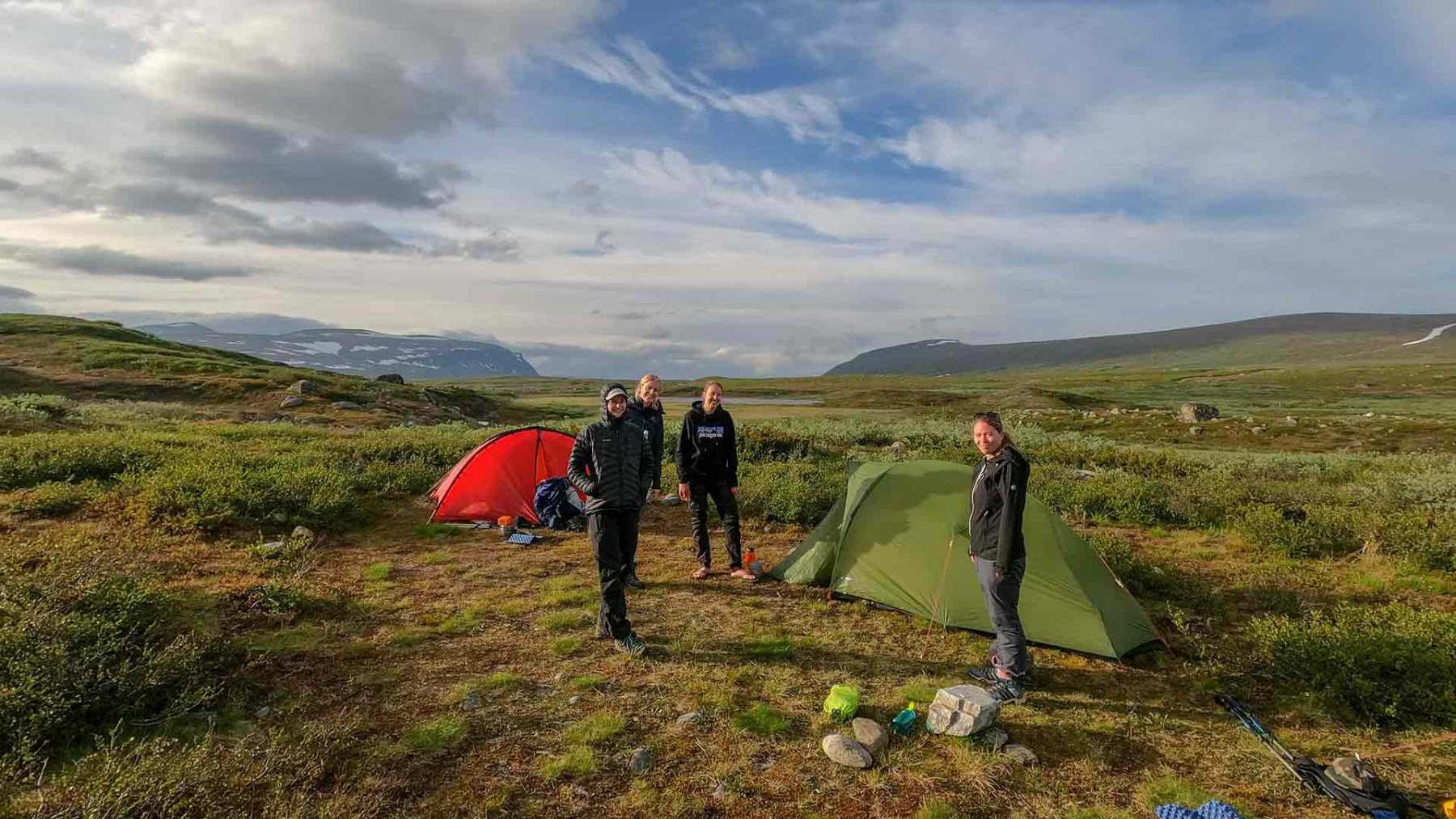Am Ende des Tages, stellen wir unsere Zelte im Bereich der Berghütten des Kungsledens auf. Mancher Abend wird sicher mit atemberaubenden Aussichten und tollen Sonnenuntergängen belohnt. Diese Tour eignet sich besonders für Sparfüchse und Gäste, die das Zelten im Norden einmal ausprobieren möchten.