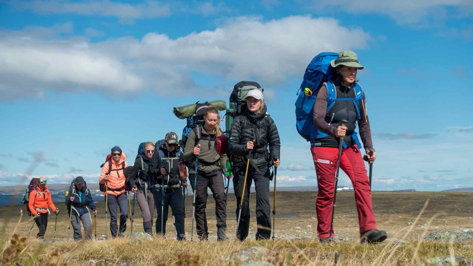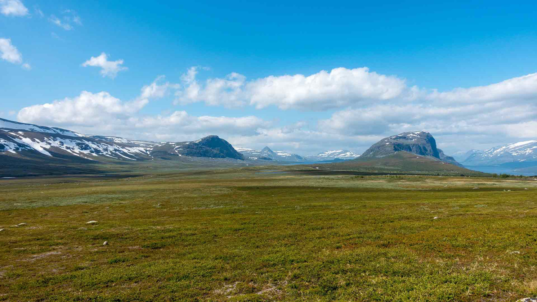 Nach dem Frühstück fahren wir nach Kebnats, von wo aus wir mit der Fähre zu unserem Startpunkt, Saltoluokta, übersetzen. Der erste Tourtag führt zunächst kurz durch einen Birkenurwald, aber bald geht es hinauf auf die Hochebenen, wo wir schon die Einsamkeit und Wildheit der Natur spüren können. Den ganzen Tag laufen wir in einer von riesigen Gletschern der Eiszeit erschaffenen Landschaft. Nach ca. 20 km stellen wir die Zelte am See in Sitojaure auf und kochen gemeinsam unser Abendessen.