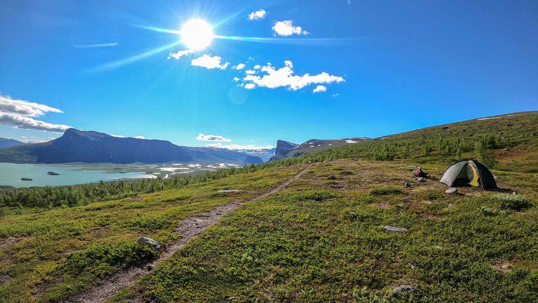 Am Morgen starten wir unsere Tagesetappe mit einer Bootsfahrt über den Laitaure. Zunächst gehen wir weiter durch einen ursprünglichen Wald, bevor wir wieder nach einem kurzen Anstieg die Aussicht genießen können. Am Abend suchen wir uns an der Umgebung der Parte – Hütte ein gemütliches Plätzchen zum Zelten. Pårte ist sehr schön gelegen, auf einer Halbinsel. Wir genießen den Blick über den See und unseren letzten Abend in der “letzten Wildnis Europas”.