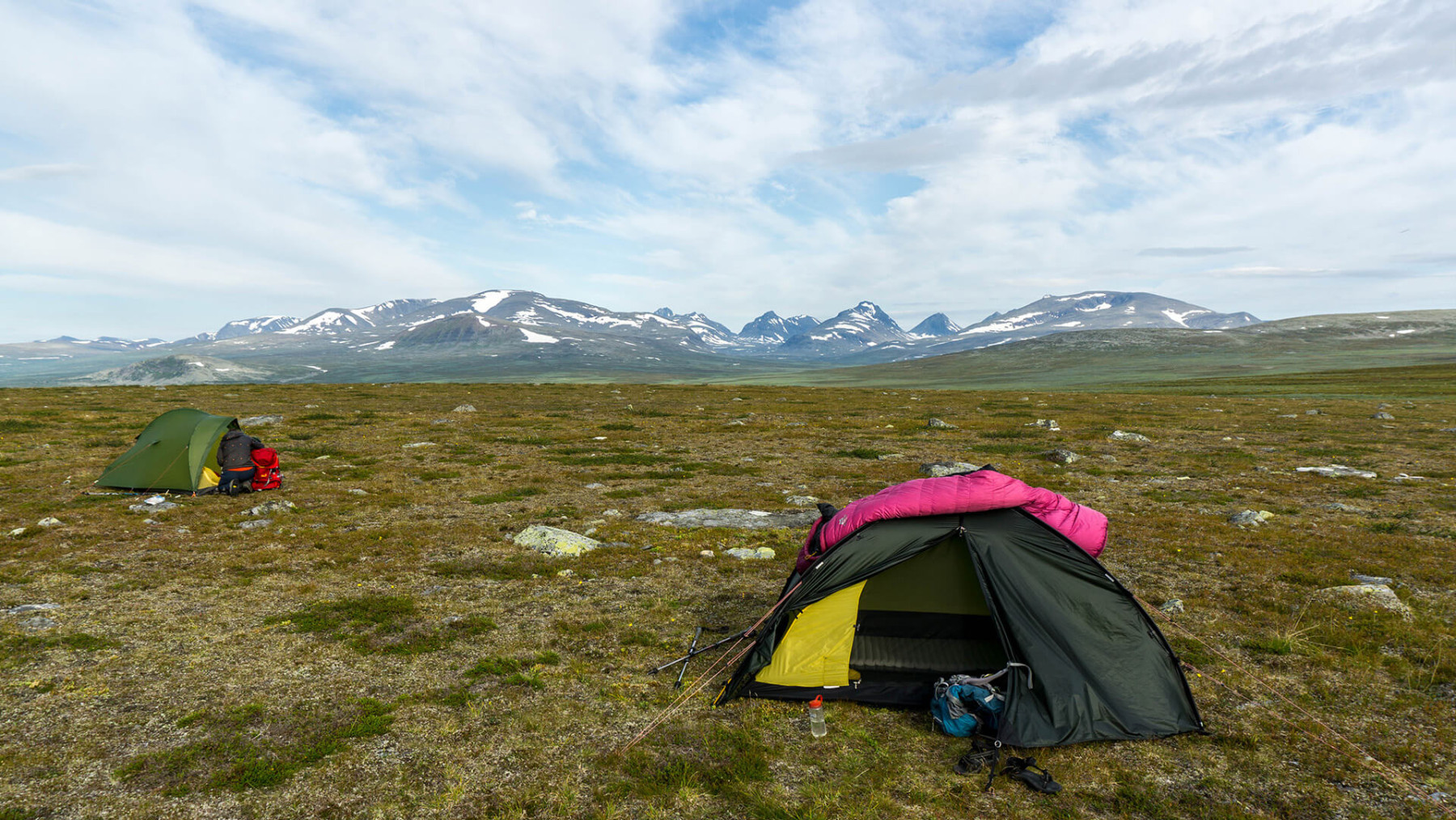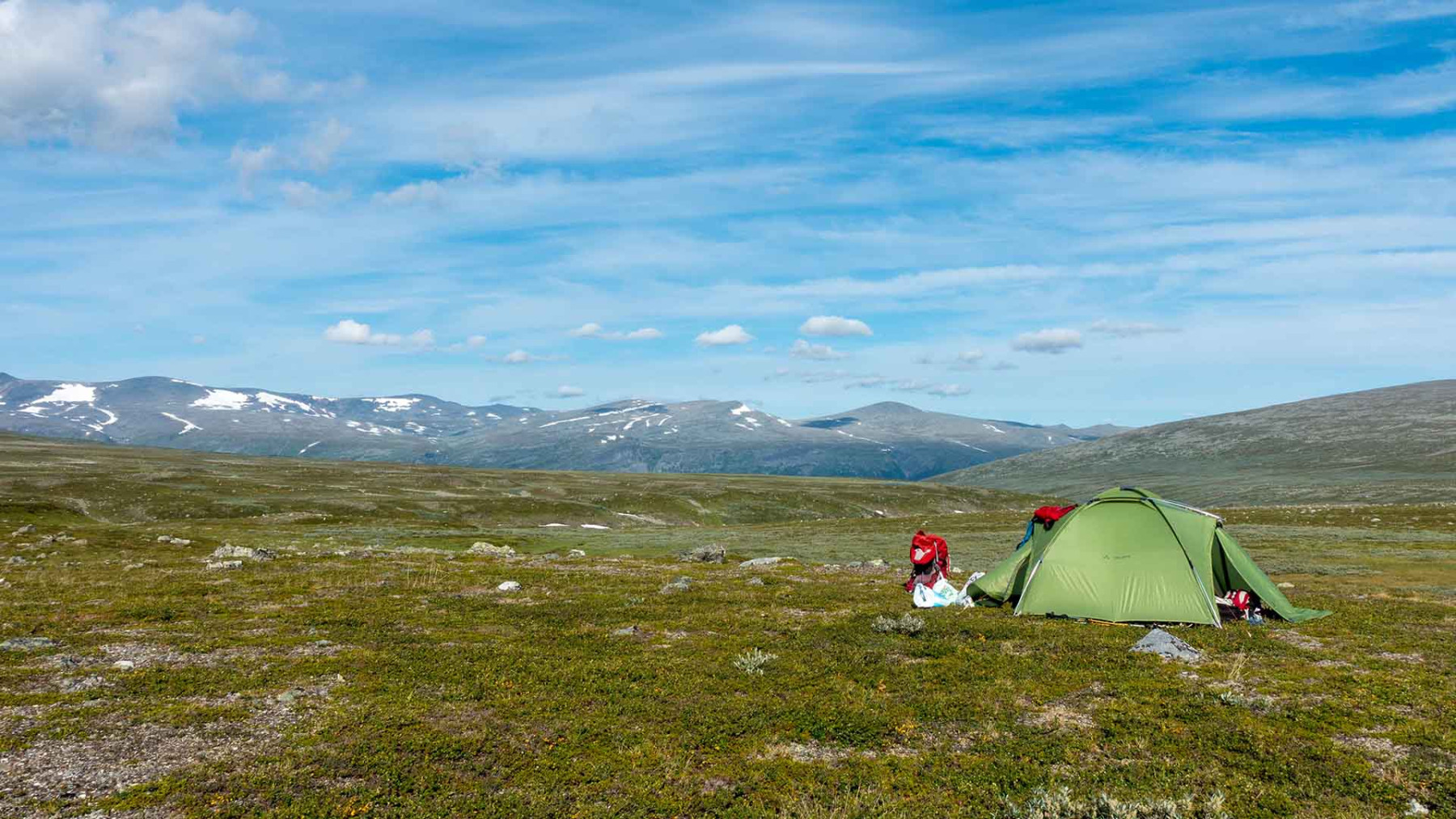 Unser heutiges Highlight ist der spektakuläre Blick ins weltberühmte und wunderschöne Rapadalen. Die Bedingungen entscheiden, ob wir auf einen kleineren Gipfel aufsteigen oder die Höhe halten und den Berg umrunden. Unser Zeltplatz liegt wieder an einem kleinen See mit klaren, blauen Wasser.