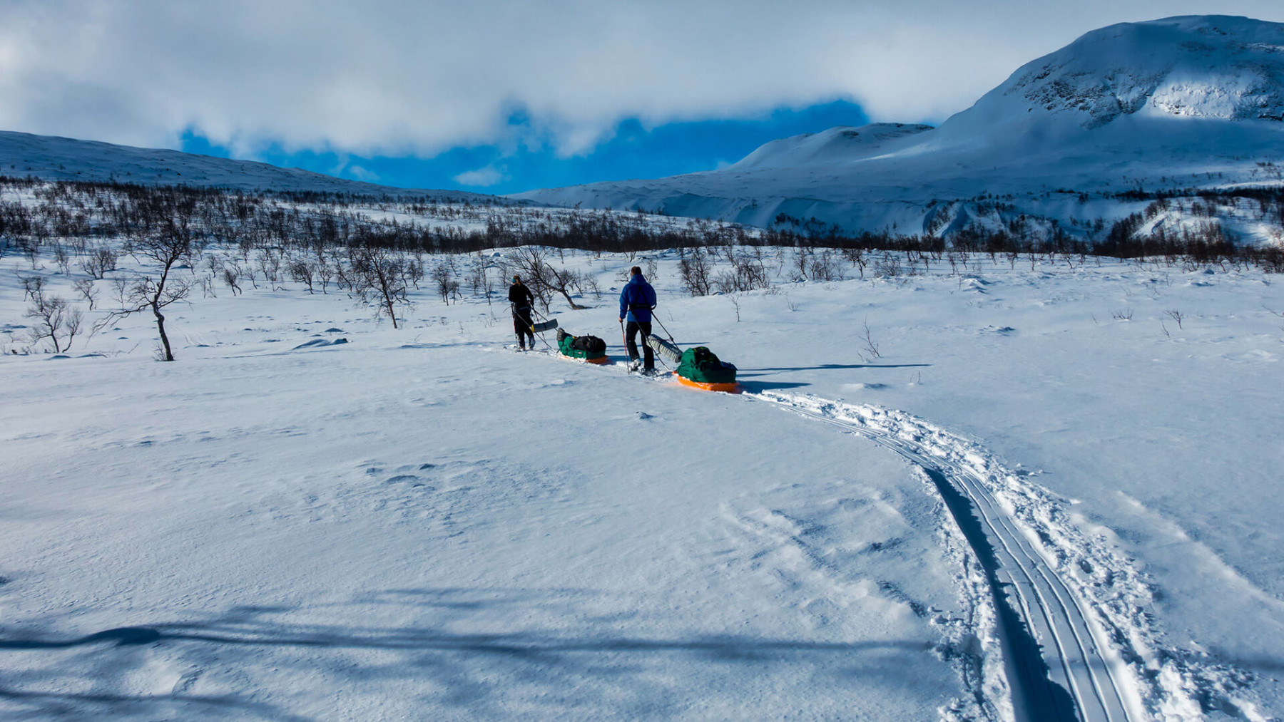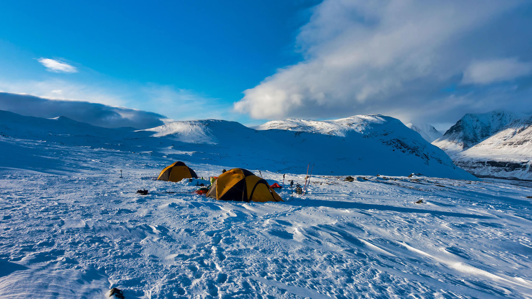 Das Gebiet unserer Wintertour ist weitgehend unberührt und ursprünglicher Natur belassen, mit nur wenigen einfachen Berghütten als mögliche Unterschlupfe. Wir lassen die Zivilisation für fünf Tage hinter uns und tauchen ein in die weiße Einsamkeit Lapplands, um die imposanten Berge dieser Region hautnah zu erleben.