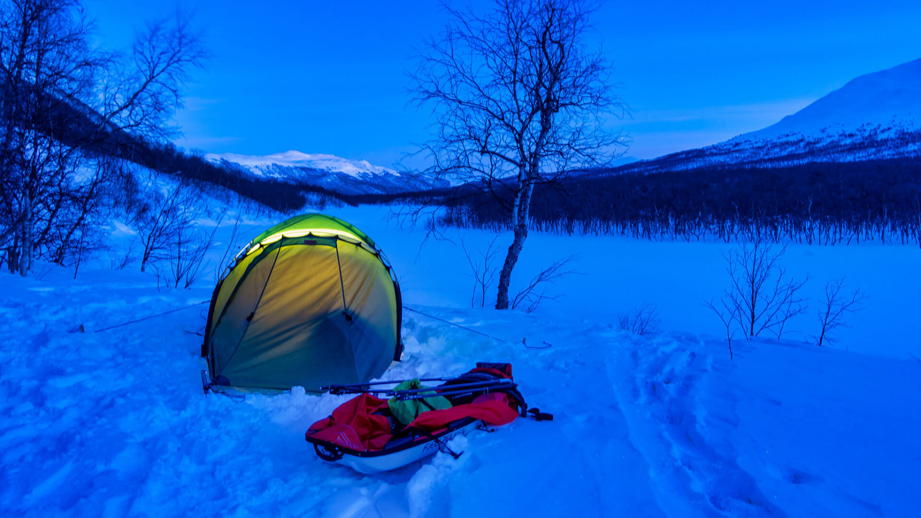 Auf Winter-Zelttour in der Wildnis Schwedisch Lapplands