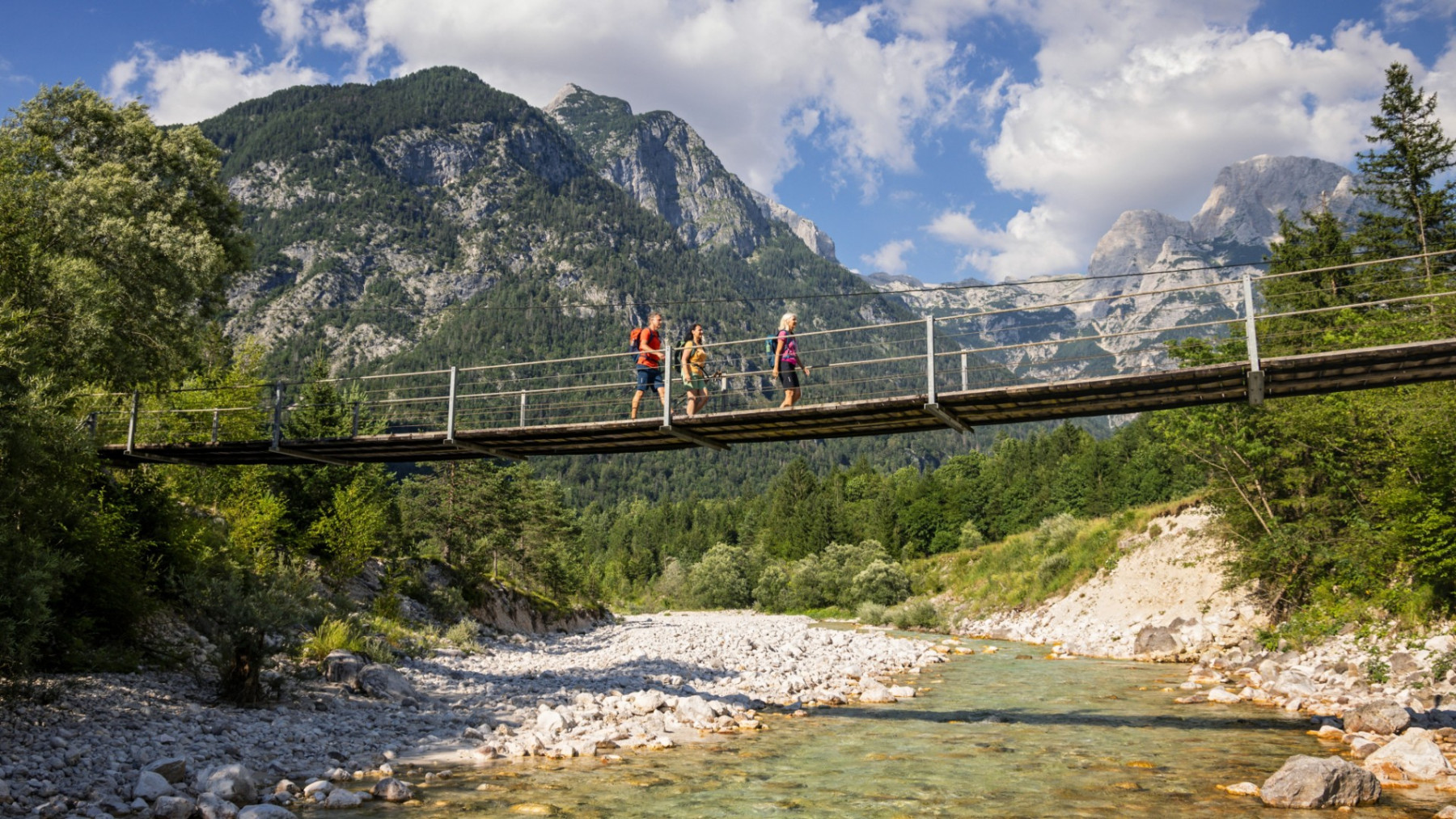 Heute erlebst du die "Königsetappe“ des Soca-Tals. Mehrere Hängebrücken führen dich über den glitzernden Fluss, vorbei an den eindrucksvollen Soca-Trögen. Bei warmem Wetter lohnt ein erfrischendes Bad in der türkisfarbenen Soca. Dein Ziel ist Bovec, ein beliebter Ort für Outdoor-Fans.